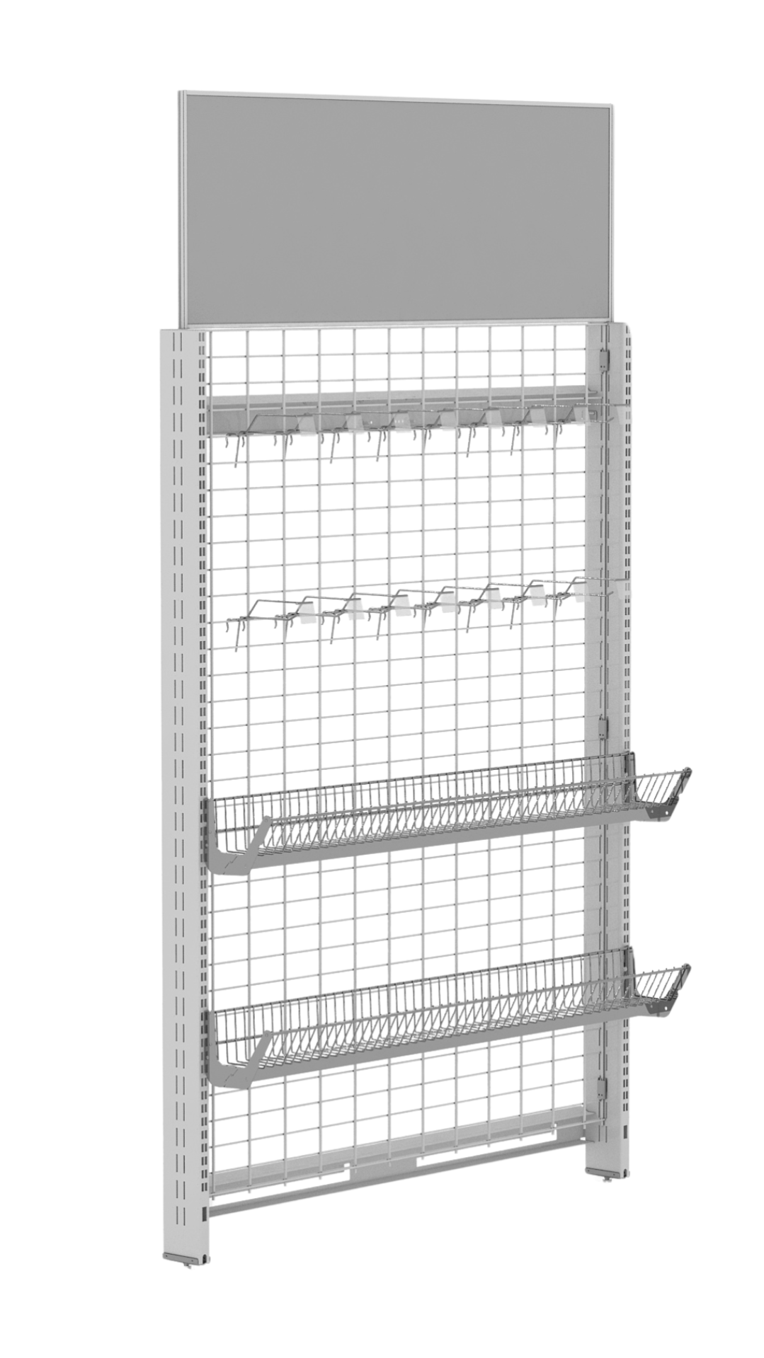 - Проволочные корзины: встроенные проволочные корзины для демонстрации и организации различных товаров. Корзины могут быть различных размеров и форм для разнообразия.