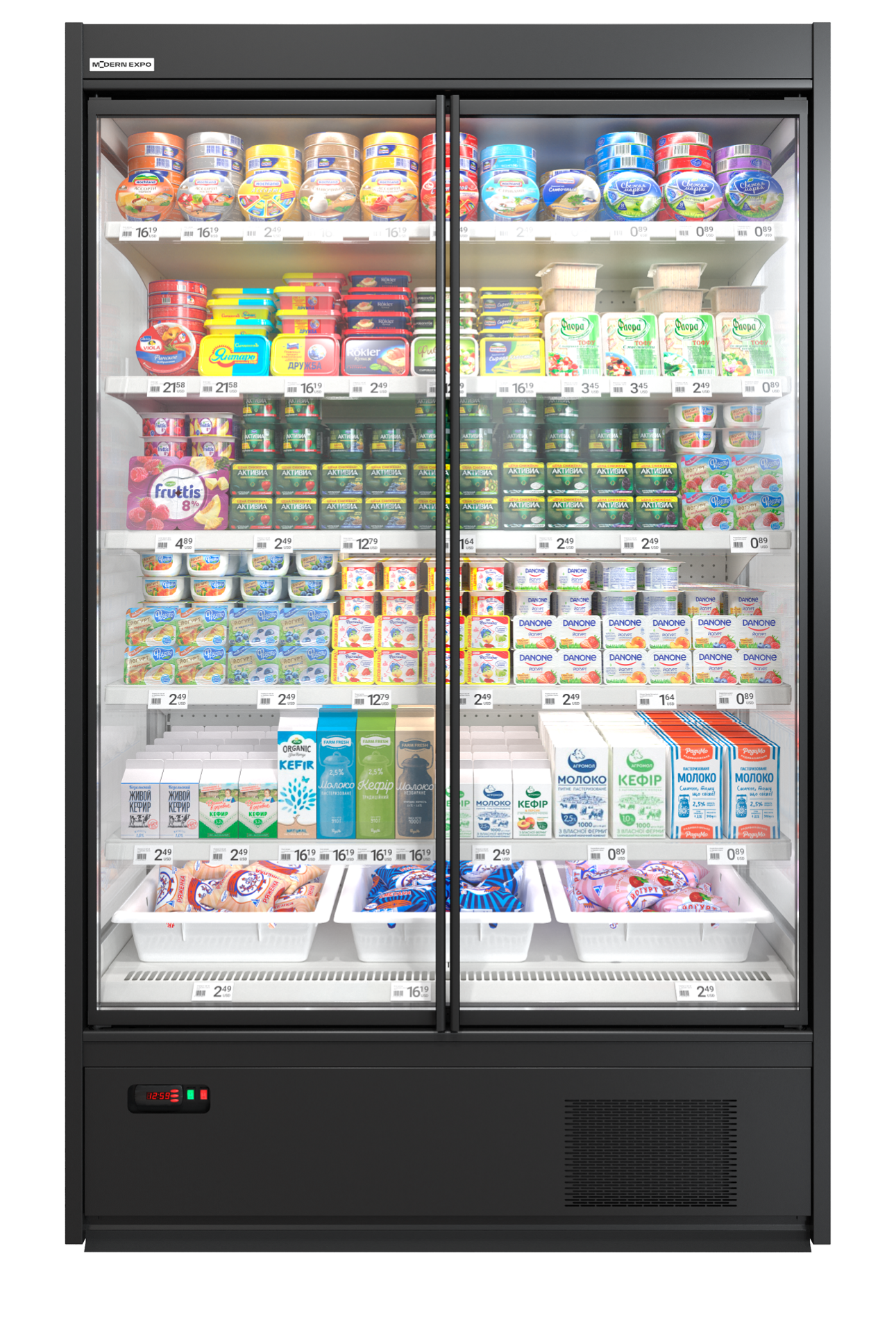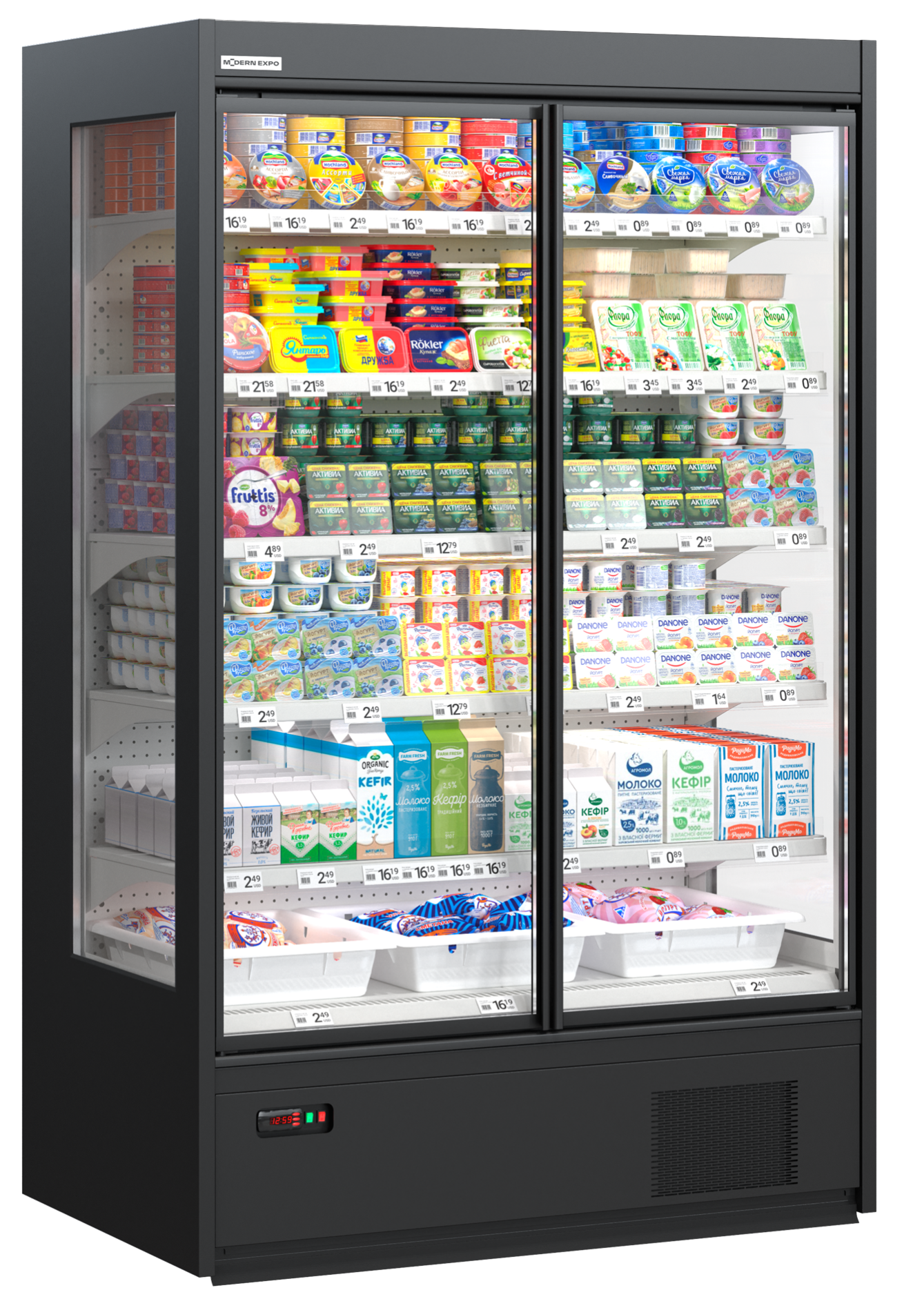 2. Холодильные торговые стеллажи и регалы для гастрономии – подходят для хранения молочных продуктов. Благодаря возможности регулировки температуры от 1℃ до 7℃ молочная продукция хранится в правильных температурных условиях, рекомендуемых производителями;