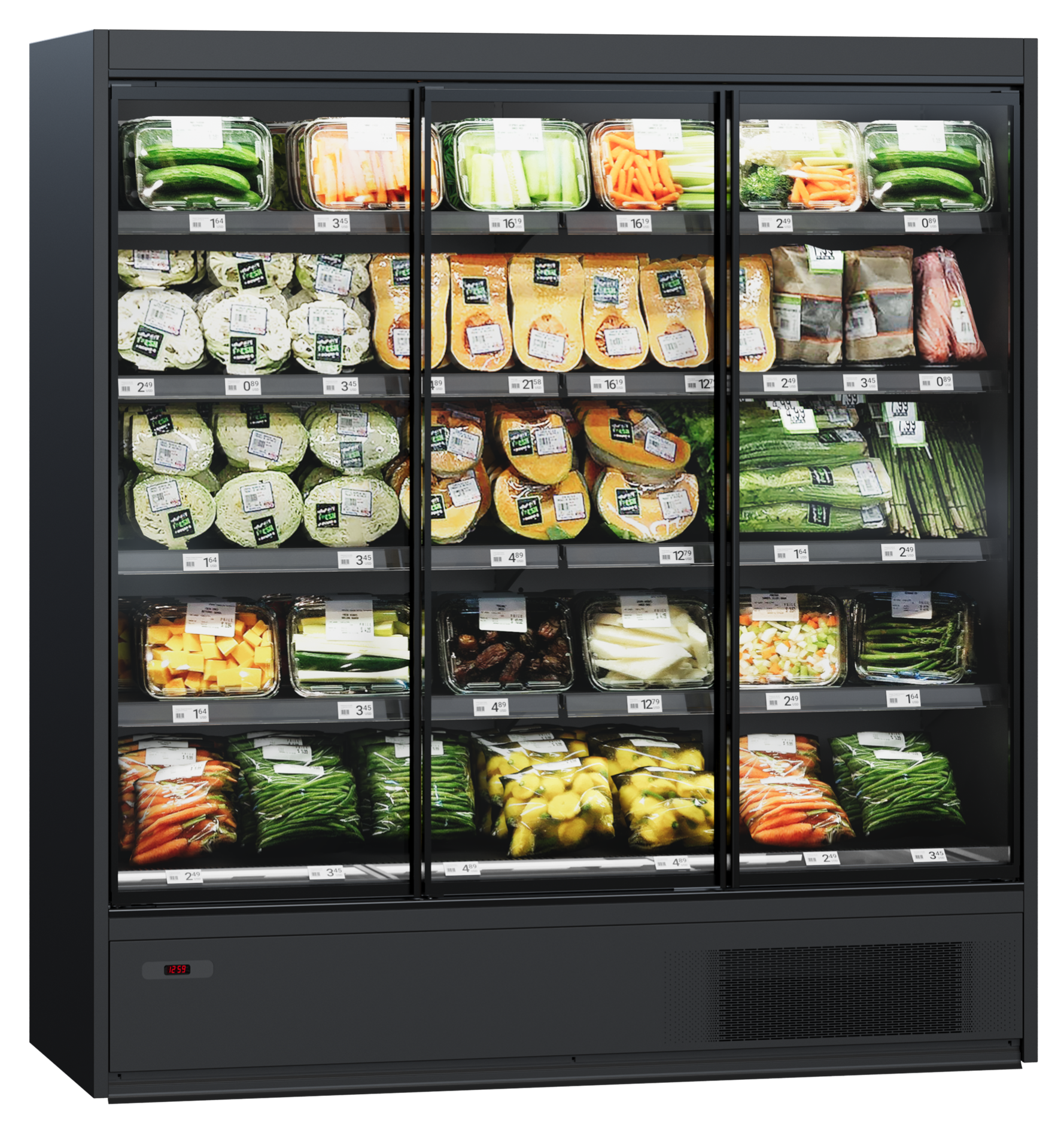 Регалы холодильные предполагают вертикальную выкладку самых разных товаров, благодаря чему продукты наглядно демонстрируются покупателям. При этом площадь территории торгового объекта расходуется максимально экономно. Гастрономические и продовольственные товары располагаются на доступной для покупателей высоте – для этого предназначены удобные широкие полки. Средняя высота такой горки составляет 1,7 – 2,2 метра.