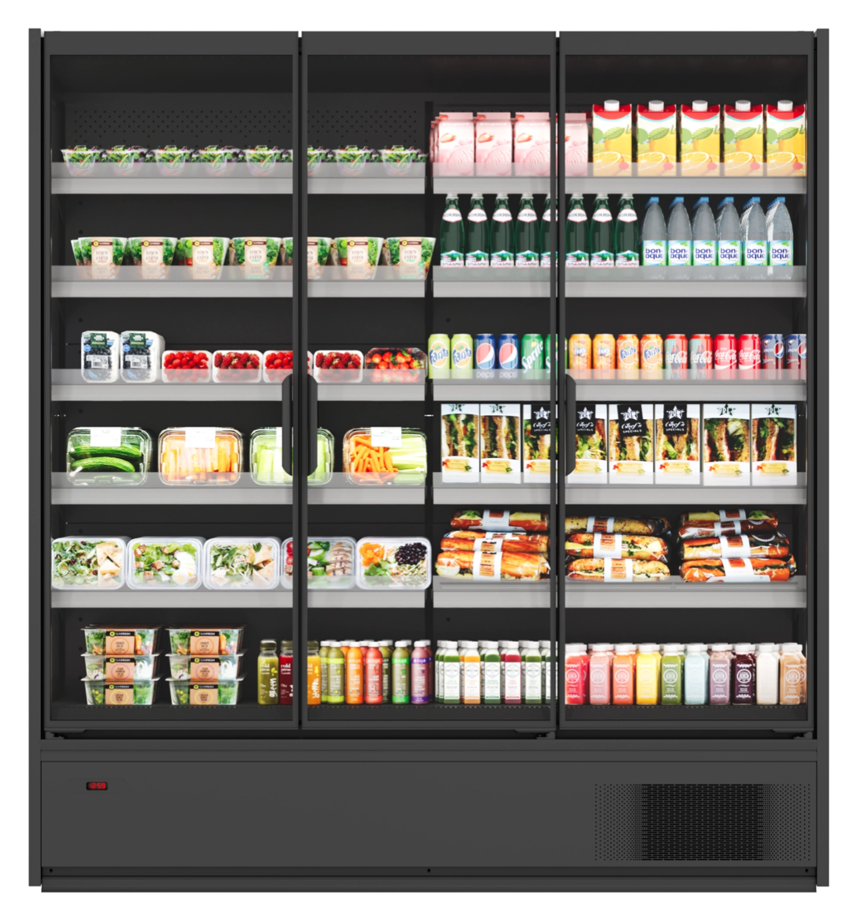 2. Холодильные торговые стеллажи и регалы для гастрономии – подходят для хранения молочных продуктов. Благодаря возможности регулировки температуры от 1℃ до 7℃ молочная продукция хранится в правильных температурных условиях, рекомендуемых производителями;
