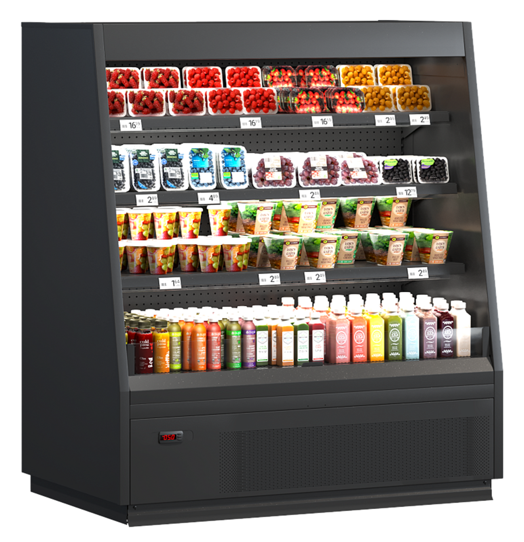 2. Холодильные торговые стеллажи и регалы для гастрономии – подходят для хранения молочных продуктов. Благодаря возможности регулировки температуры от 1℃ до 7℃ молочная продукция хранится в правильных температурных условиях, рекомендуемых производителями;