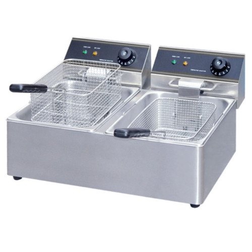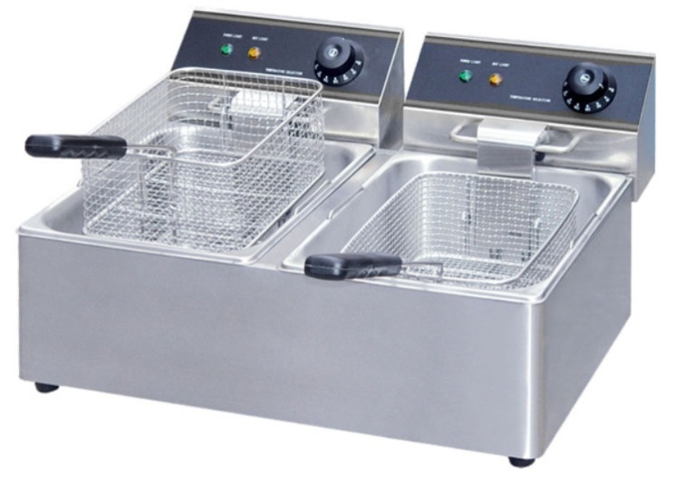 Фритюрница Hurakan HKN-FT66N изготовлены из стали, разрешенной для производства пищевого оборудования. Тепловая установка используется для жарки в большом количестве масла, имеет холодную зону. Имеется два рабочих поста с отдельными механизмами управления. Нагрев масла осуществляется при помощи трубчатого нагревателя, защищенного стальной пластиной. Диапазон рабочих температур составляет +60°С…+190°С. Температурный контроль осуществляется автоматически, во время работы ТЭНов горят индикаторы нагрева. Аппарат обладает небольшим весом и удобными габаритами, поэтому его можно использовать как переносное оборудование.