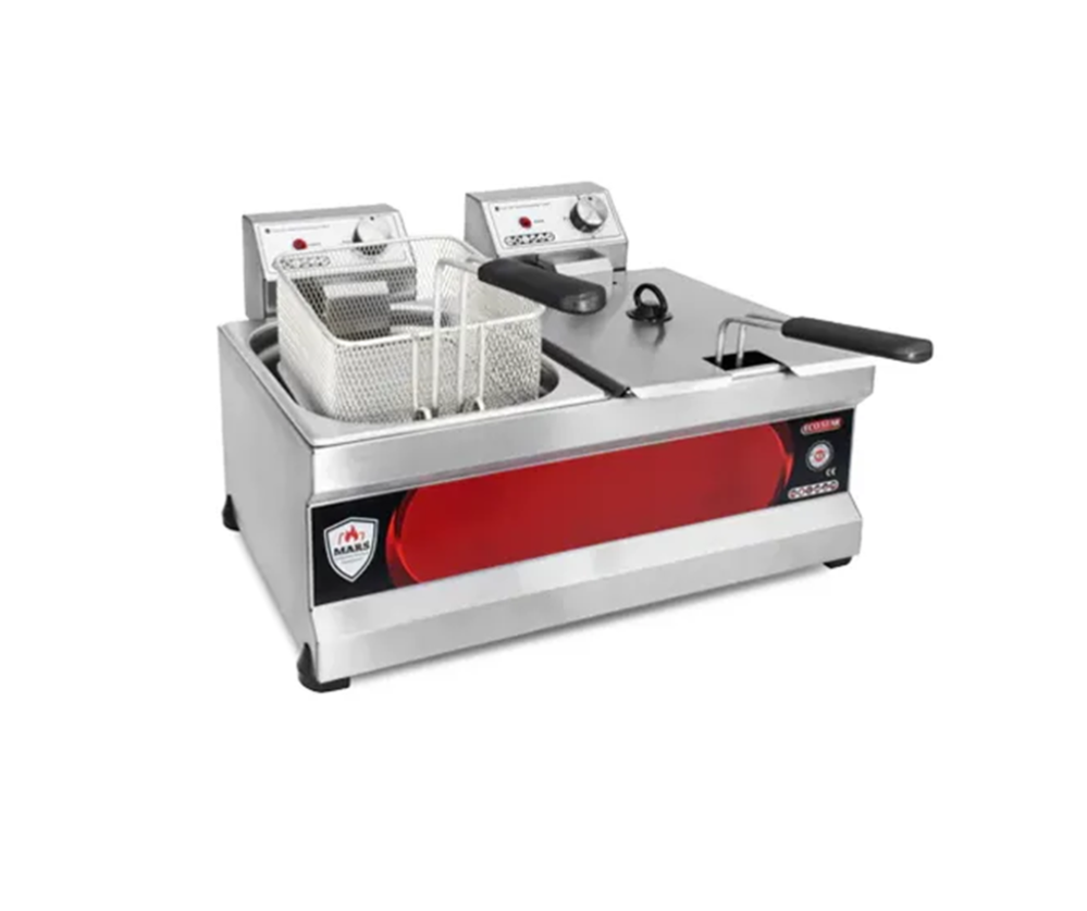 Двойные электрические фритюрницы MF MARS — это кухонные устройства, которые позволяют одновременно готовить две разные порции или виды продуктов во фритюре. Эти фритюрницы предназначены для удобства и эффективности, особенно когда нужно приготовить различные блюда одновременно, сохраняя их вкусовые качества и ароматы отдельно.