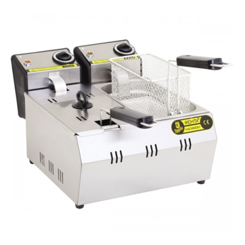 Профессиональная фритюрница Remta на две емкости по 3 и 8 литров. Мощность от 4,2 кВт до 6 кВт\. Нержавеющая сталь – разборный корпус. Корзина и крышка в комплекте. Температурный режим: 60-190 ºС. С холодной зоной