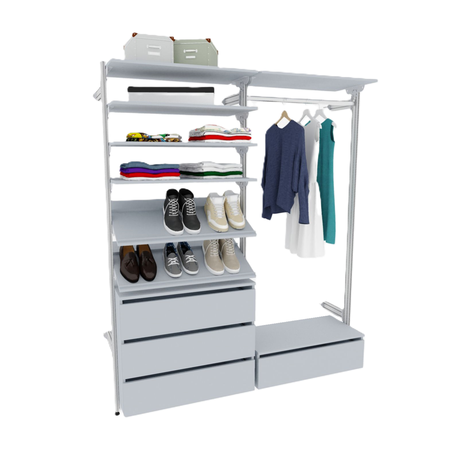 Гардеробные системы – это удобная и функциональная мебель, которая размещается в разных помещениях, радует заказчиков своими вместительными ящиками и просторными, открытыми полками, которые помогают легко находить все необходимые вещи гардероба. Кроме обуви и одежды, такое гардеробное помещение дает возможность размещать множество различных аксессуаров, одежды, постельного белья и многое другое.
