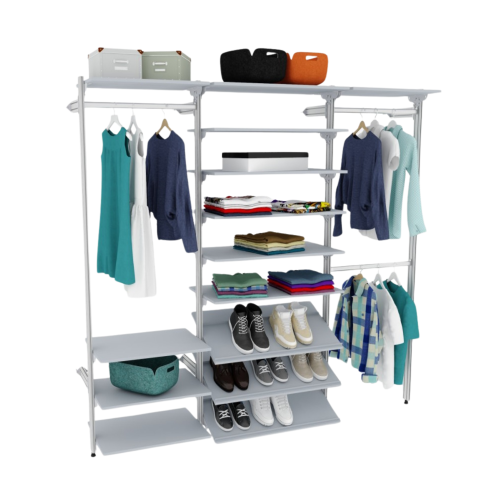 | Комплектация | модуль 1 стойка базовая гардеробной системы SS (алюминий анодированный + комплектующие) 4 шт., модуль 1.1 накладка на стойкую базовую 2 шт., модуль 2.1 (600,800) полка 600,800х450 мм 11шт., модуль 2.2 (600,800) полка для обуви 600,800х450 мм 3 шт. модуль 4.1 (600,800) труба на стойку 600,800 мм 3 шт. |