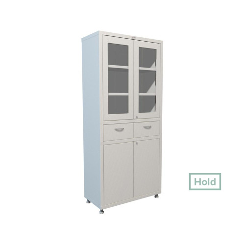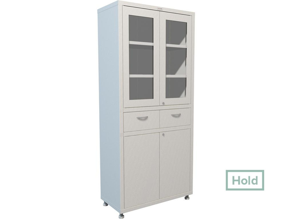 предназначены для хранения медикаментов, инструментов,больничных документов, карточек пациентов в медицинских учреждениях и организациях; изготовлены из стали, толщина корпуса 0,6мм, толщина двери 0,7мм, ширина металлической рамки 60 мм; комплектуются ключевыми замками Практик (2000 комбинаций); комплектуется эргономическими хромированными ручками; максимальная нагрузка на металлическую полку - 30 кг; поставляются в разобранном виде, в комплект поставки входят четыре регулируемые опоры (высота-100 мм, диапазон регулировки: 95-125 мм); опции: установка трейзера (только в нижнее отделение);* высота с установленными регулируемыми опорами.
