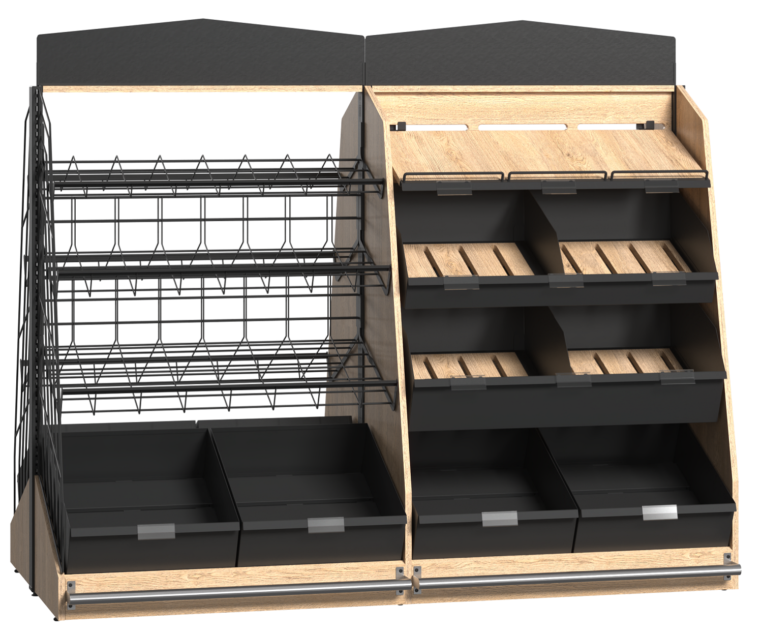 Использование такой мебели дает возможность содержать большой ассортимент хлеба и других выпеченных изделий, что позволяет продемонстрировать широкий выбор продукции, сэкономить место в магазине и увеличить площадь торгового зала.