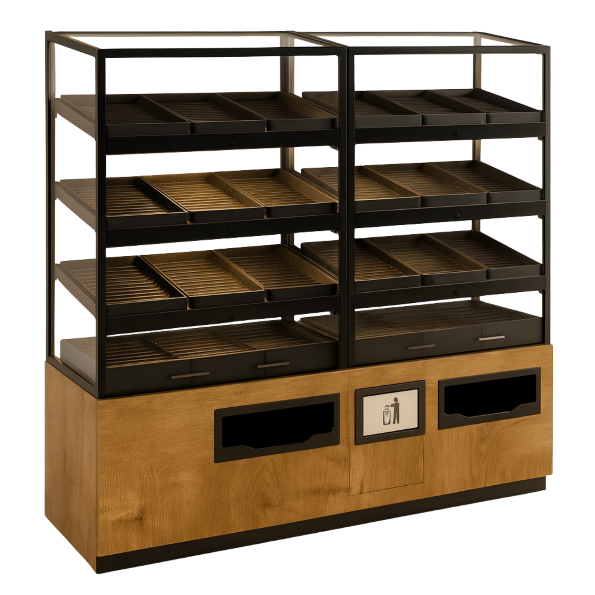 - Стеклянные боковины: благодаря стеклянным боковинам продукция всегда будет на виду, что повышает ее привлекательность и позволяет покупателям легко оценить товар.