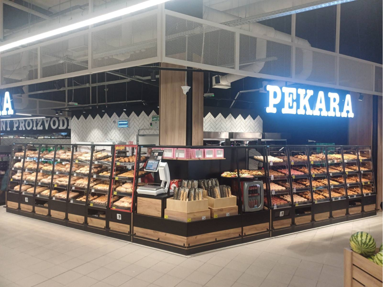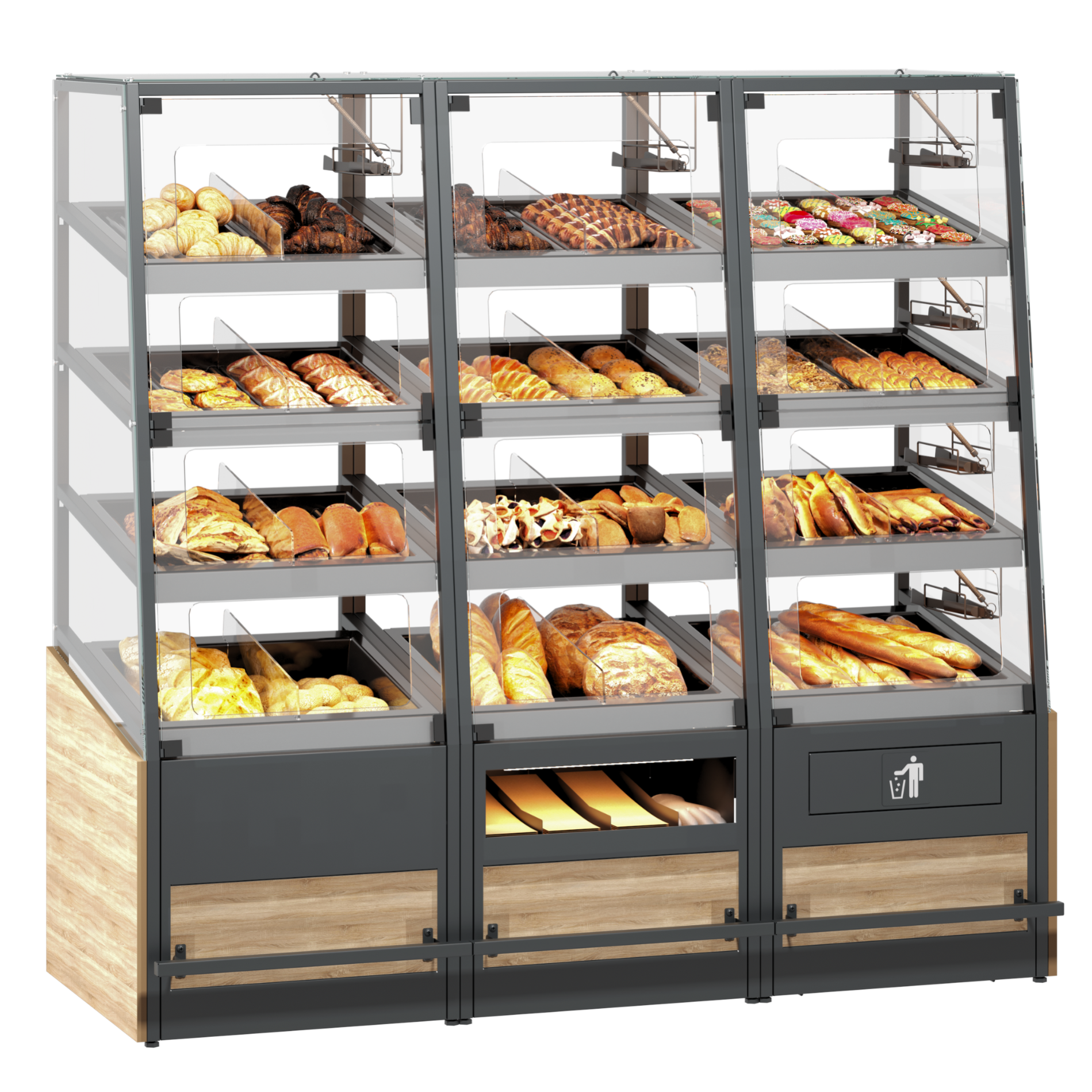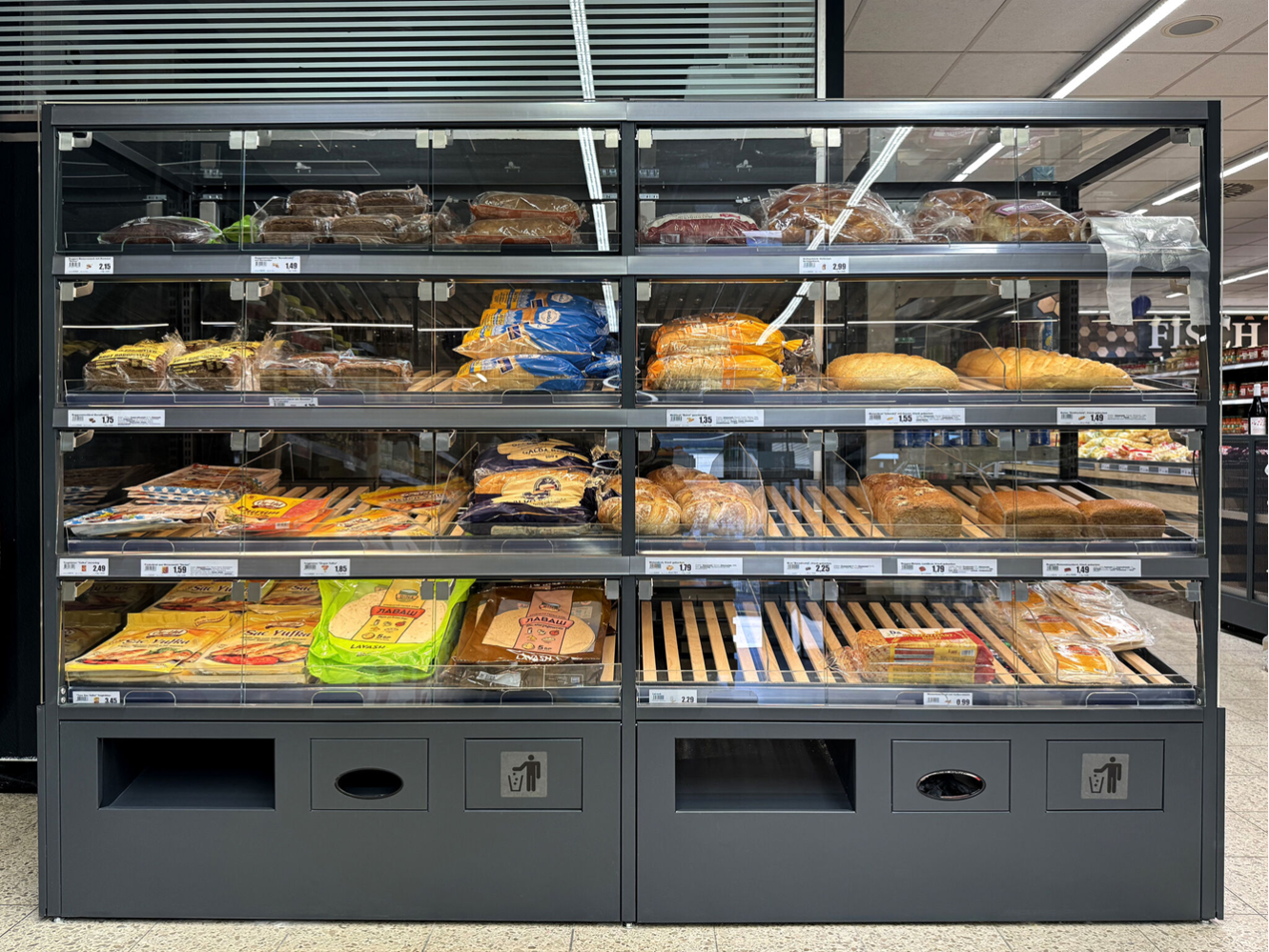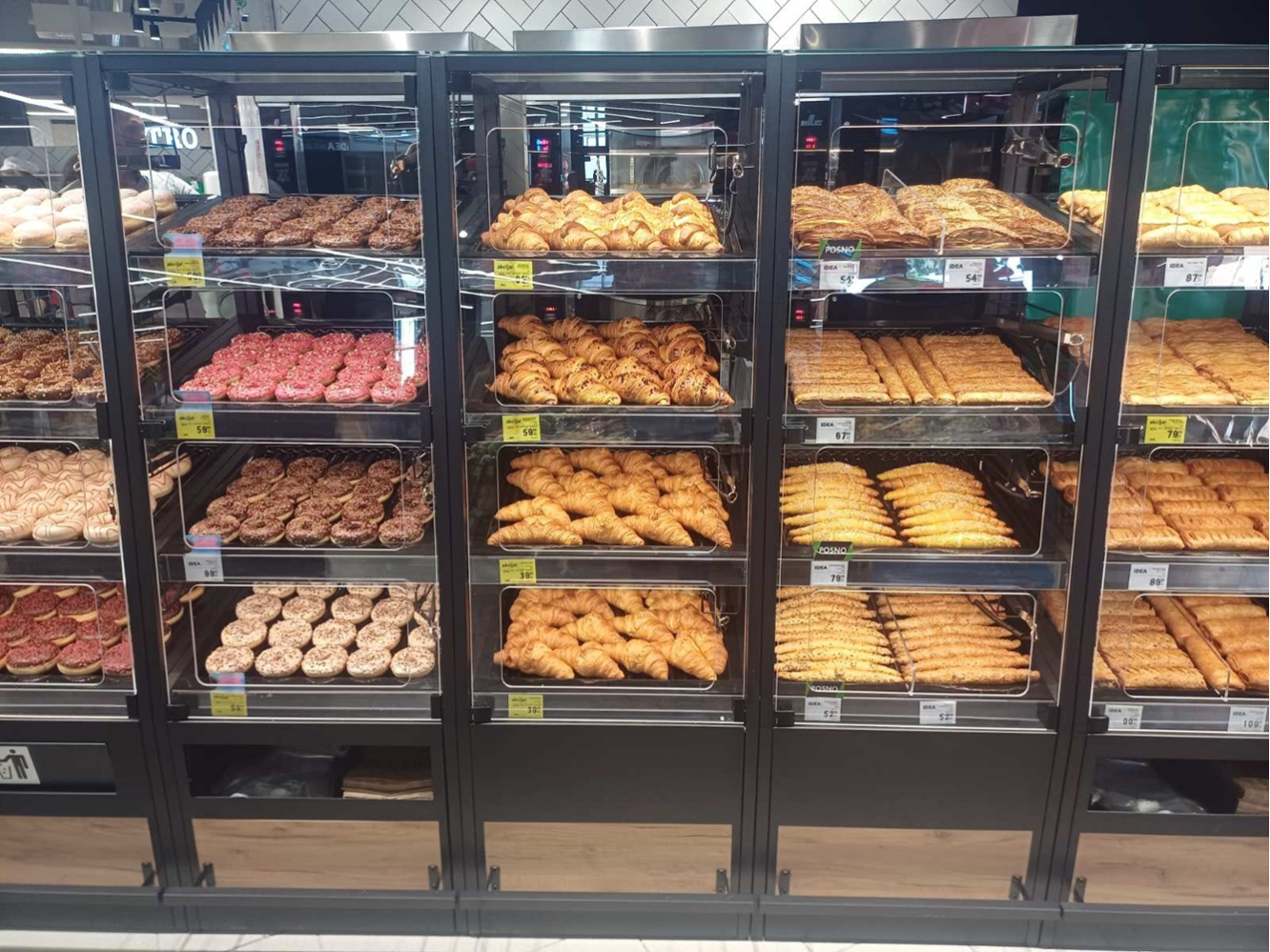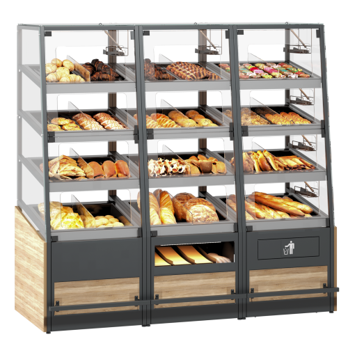 - LED освещение: улучшенная экспозиция хлебобулочных изделий с энергосберегающим LED освещением.