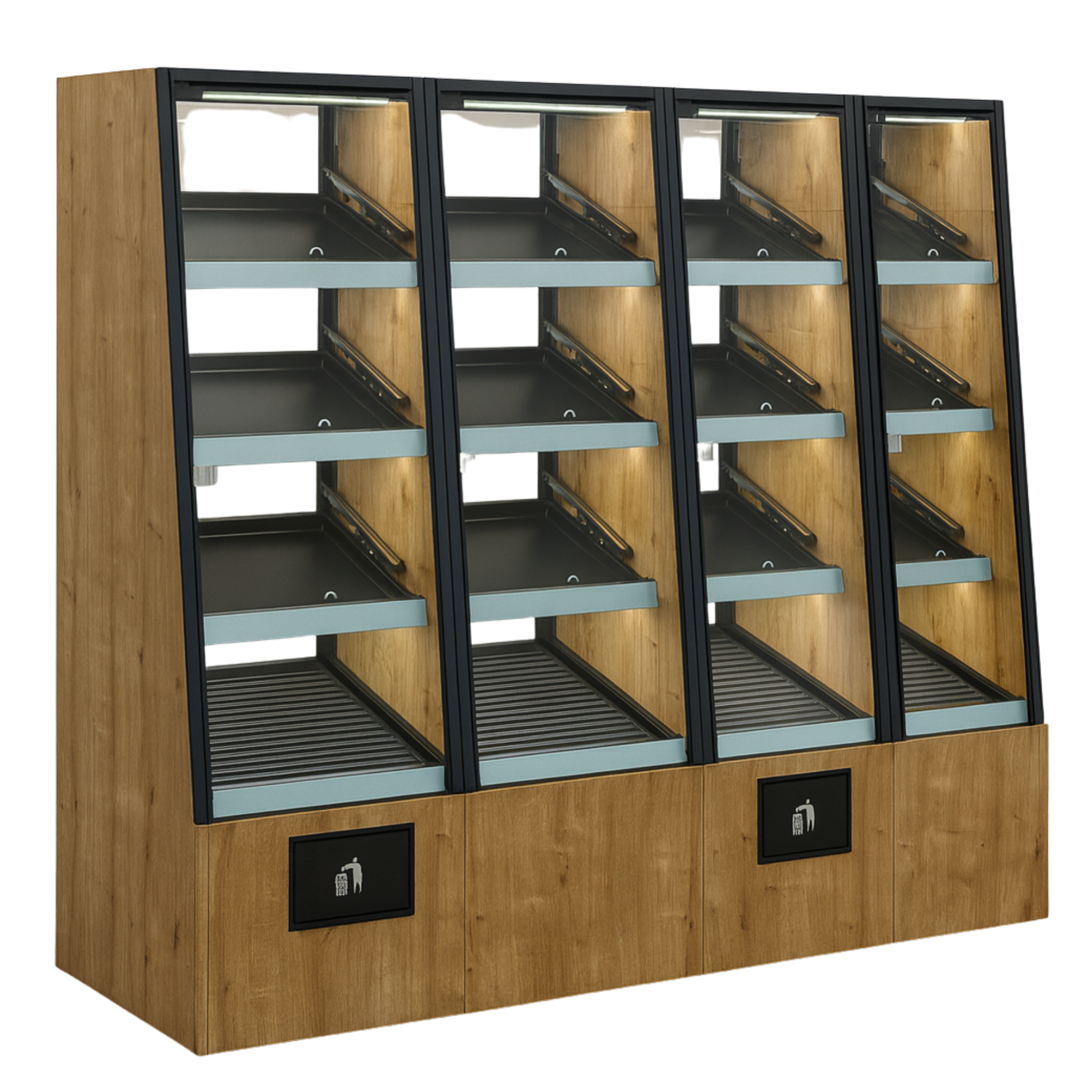 - Стеклянные фасады, открывающиеся: благодаря прозрачным фасадам, ваши продукты всегда будут в центре внимания покупателей. Открывающиеся двери обеспечивают удобный доступ к товару, облегчая процесс загрузки и обслуживания.