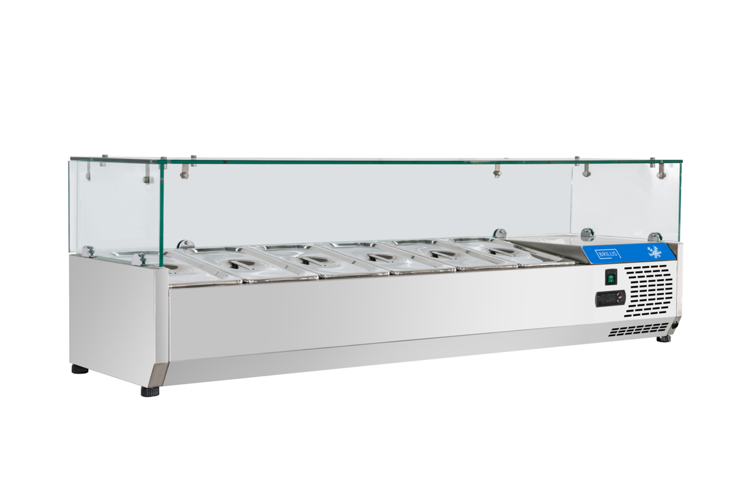 Холодильная витрина для топингов BRILLIS VRX1500/380 предназначена для пиццерий, ресторанов, фаст-фуд заведений и форматов open-kitchen, где необходимо хранить ингредиенты в быстром доступе и поддерживать их свежесть в течение всего рабочего дня. Эта модель идеально подходит, когда нужно организовать полноценную пицца-станцию или салат-линию с визуальным контролем ассортимента.