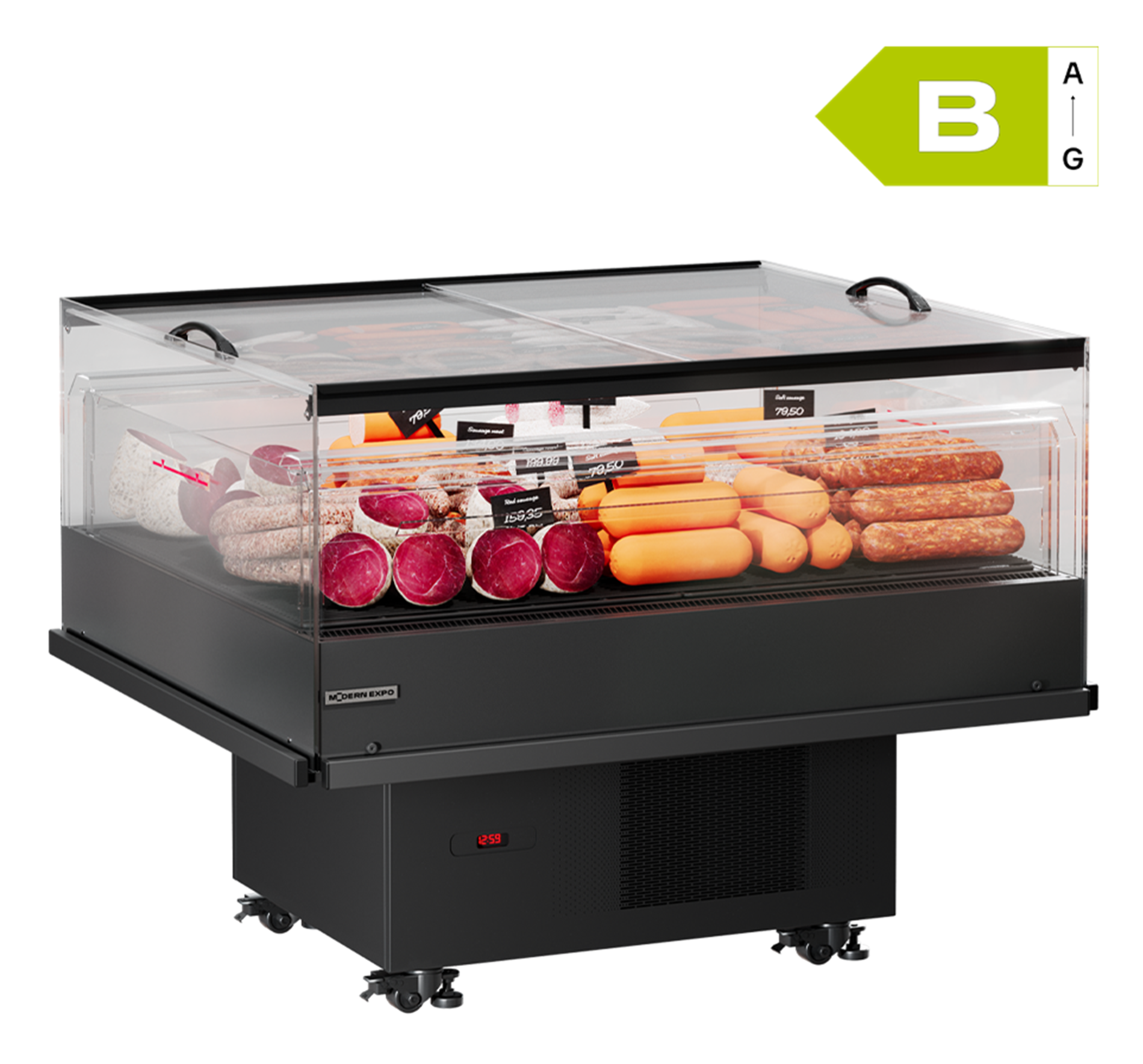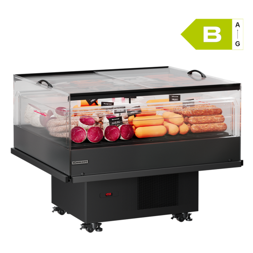 | Комплектующие | экологичный холодоагент пропан R290, возможность соединять в одну линию несколько витрин, природная оттайка (без ТЭНов) |