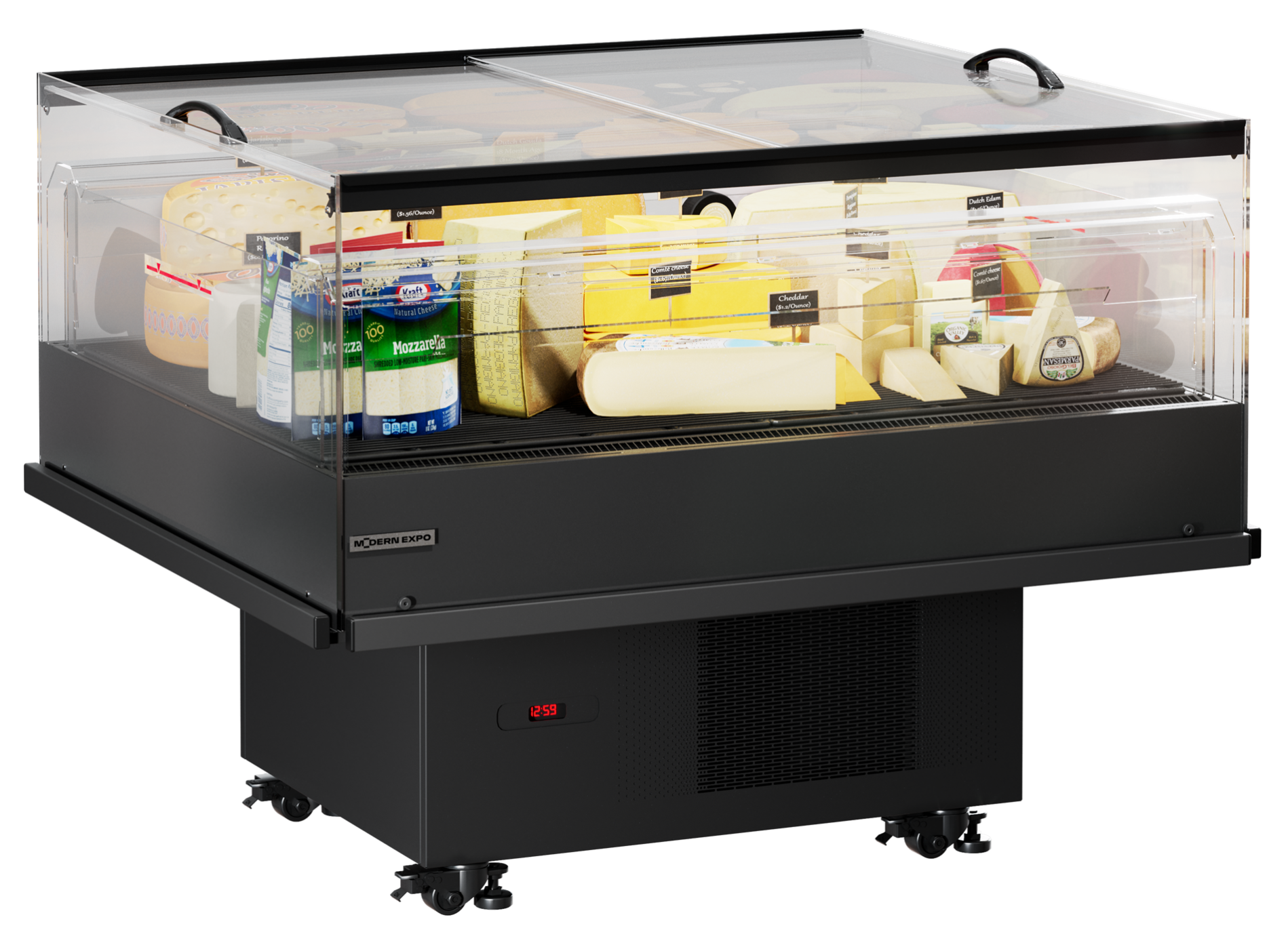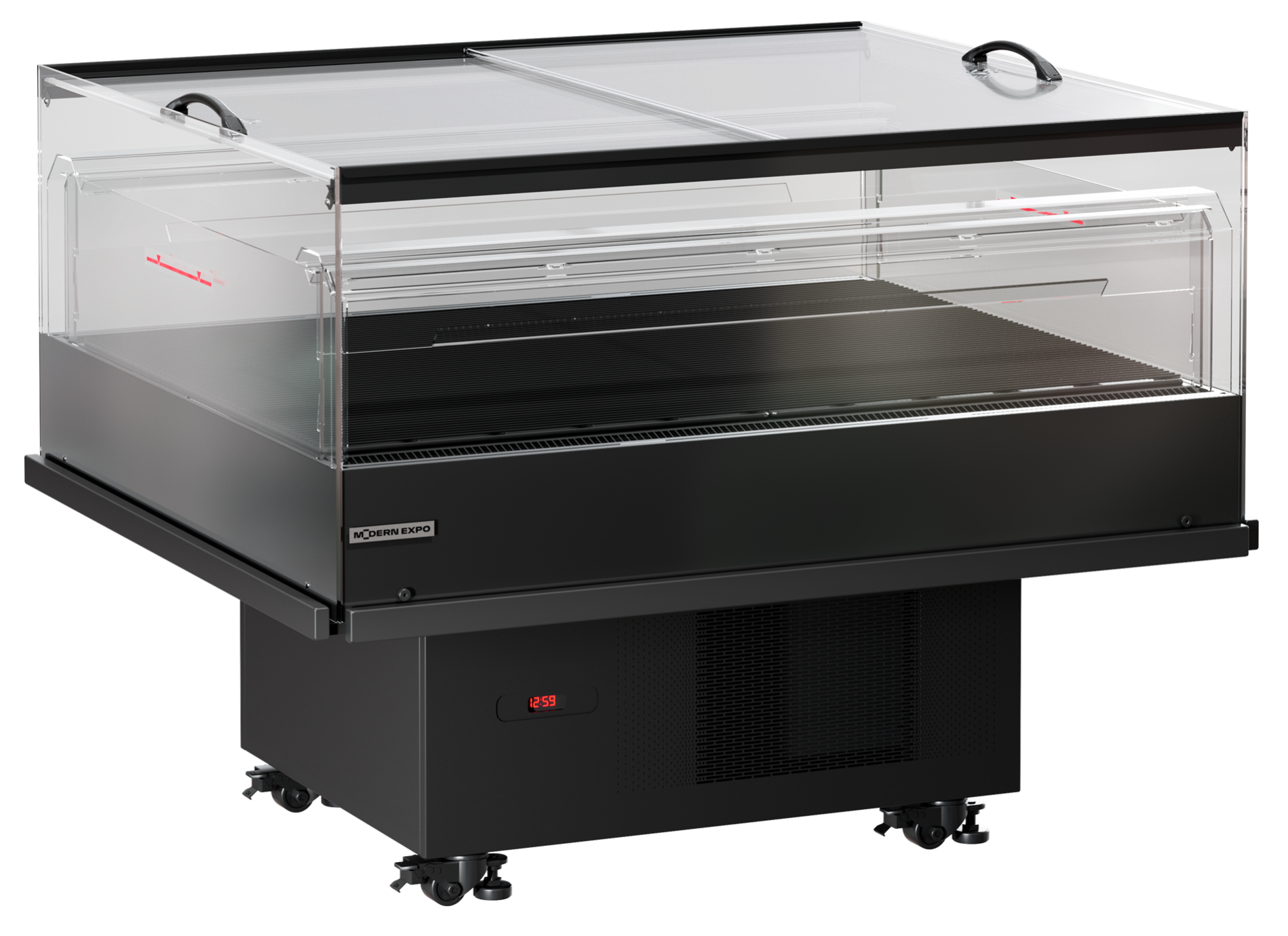 PROMOS предназначена для продажи высокомаржинальных и акционных товаров. Верхняя часть витрины и ее ключевые конструктивные элементы изготовлены из прозрачных материалов, что обеспечивает максимальную видимость продукции внутри витрины.