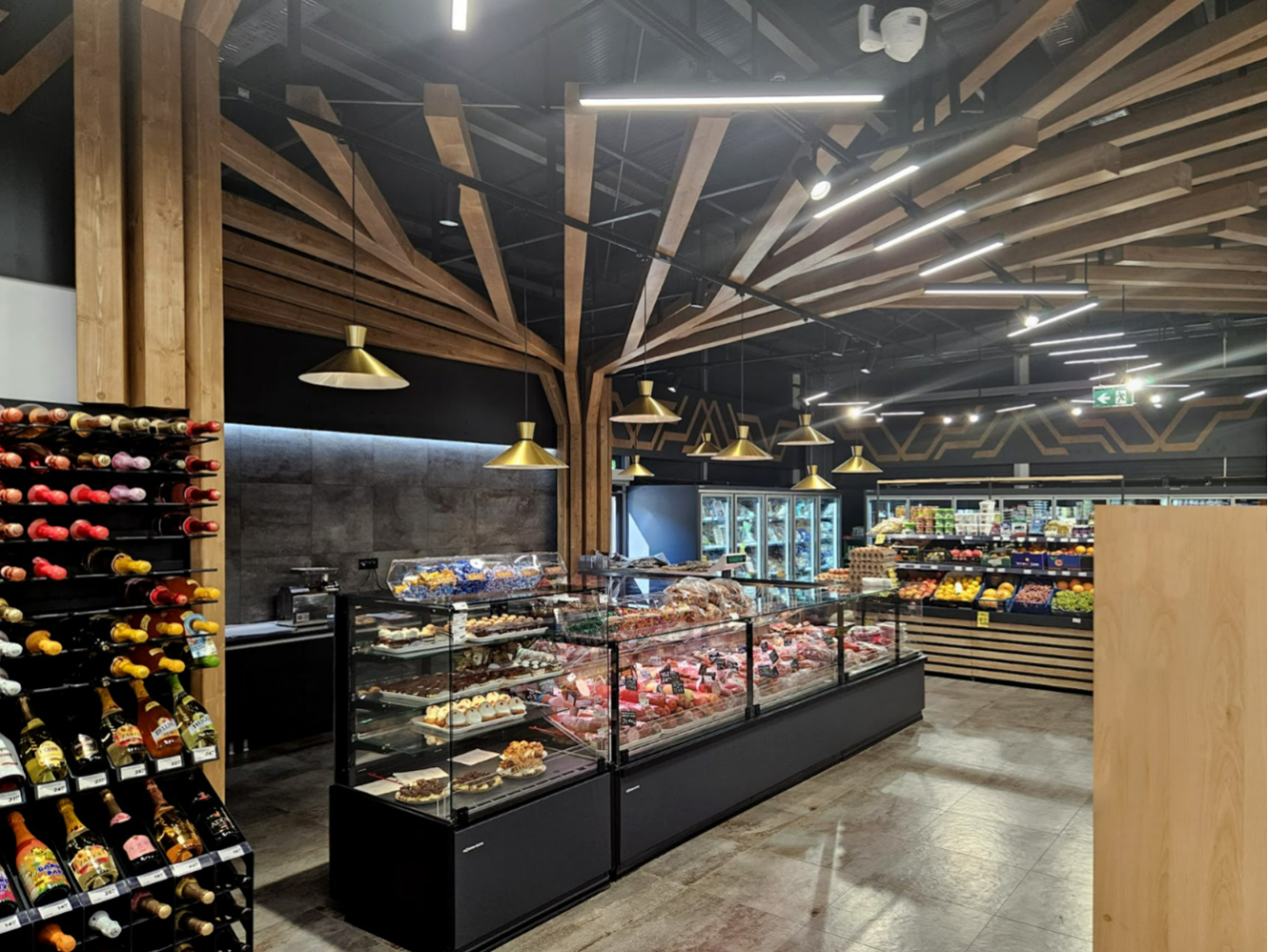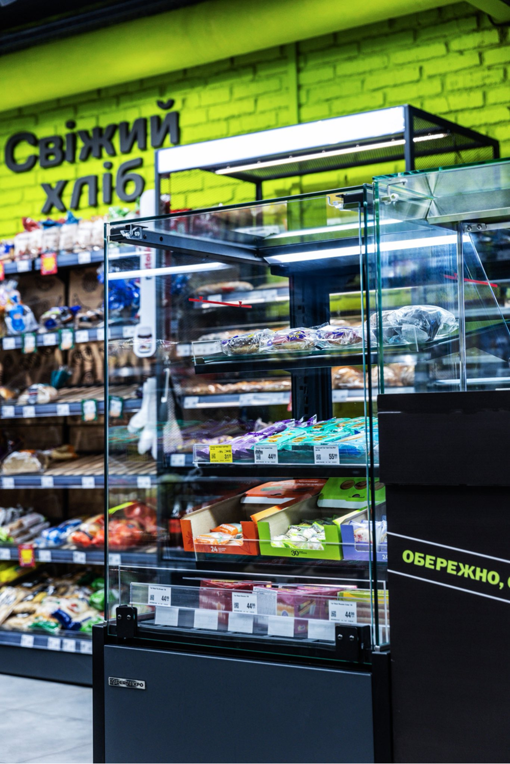 Внешний вид. Современный дизайн витрины и ее прозрачные стекла позволяют эффективно демонстрировать продукты и привлекать внимание покупателей.