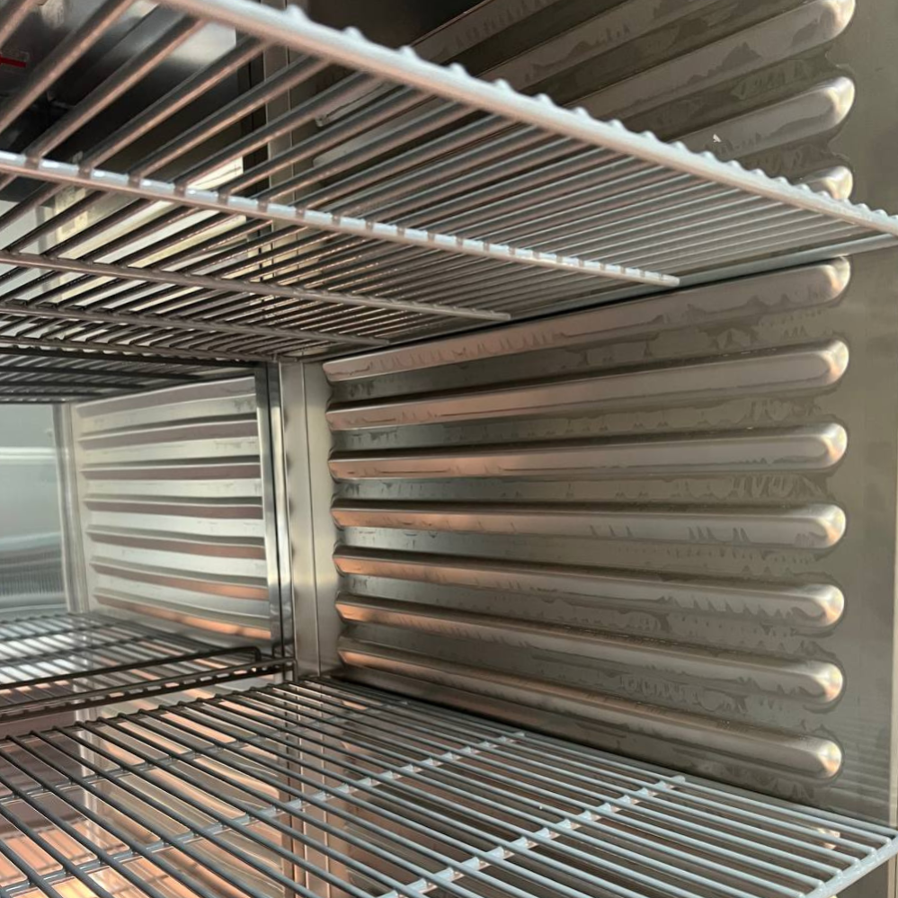 В холодильном шкафу установлена моноблочная система: испаритель и конденсатор находятся в верхней части. Преимущество такой системы заключается в увеличенном пространстве камеры, удобстве обслуживания и быстром доступе к деталям.