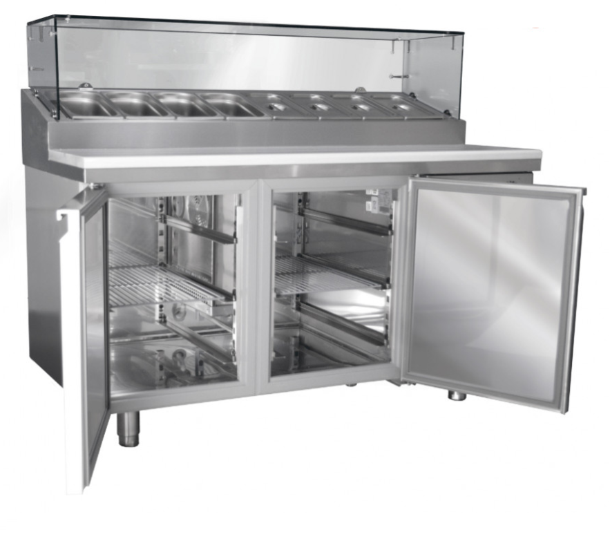 Благодаря тому, что стол для пиццы BRILLIS BMN155-R290 сочетает в себе так много функций его очень удобно покупать в маленькие пиццерии или другие общепиты. Оборудование объединяет стол, холодильный шкаф и витрину, где тоже может храниться продукция.
