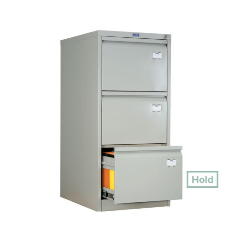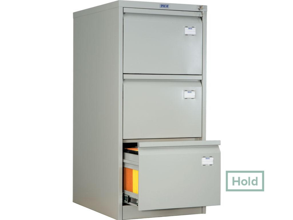 Ящики металлических картотек имеют телескопические направляющие, обеспечивающие систему полного выдвижения. Надежность подтверждена промышленными испытаниями: 50000 открываний при нагрузке на ящик 30 кг. Металлические картотеки оборудованы антиопрокидывающим устройством, не позволяющим одновременно выдвигать более чем один ящик. Комплектуются такие шкафы центральным замком ПРАКТИК с возможностью смены цилиндра и мастер-ключом. В файловых картотечных шкафах ПРАКТИК документы хранятся в отдельных подвесных папках (файлах), оснащенных рубрикаторами, что позволяет легко организовать их поиск и сортировку.