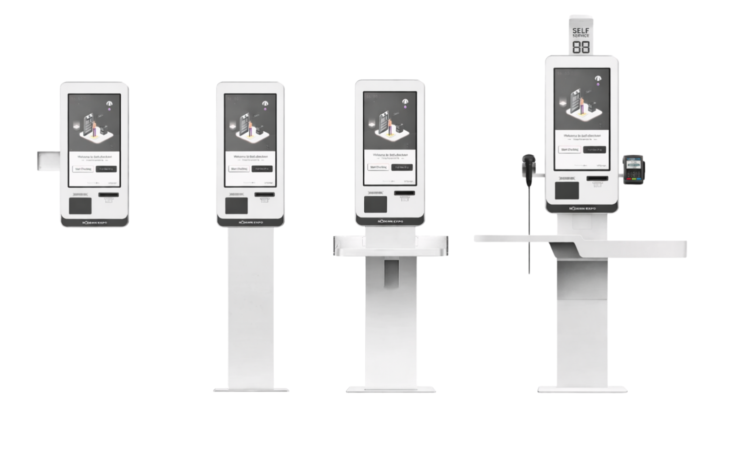 | Комплектующие | касса самообслуживания, дисплей 21,5", держатель банковского терминала, сканер Magellan 34X0, принтер чеков Epson EU30 |