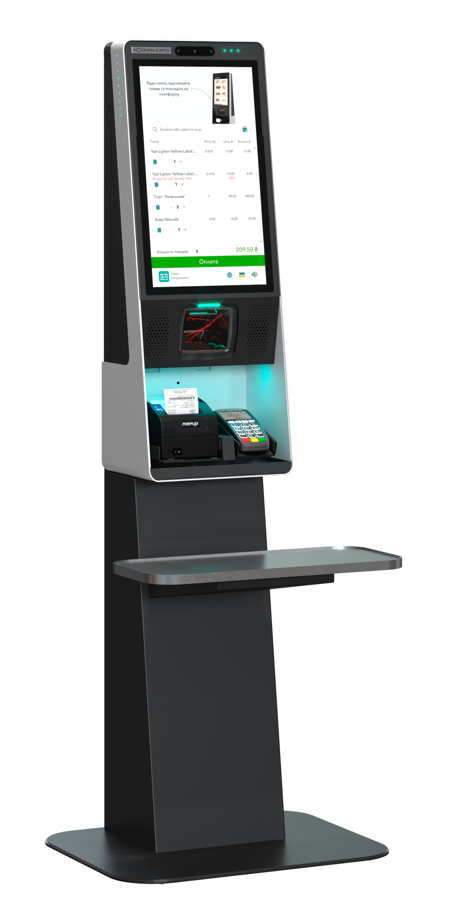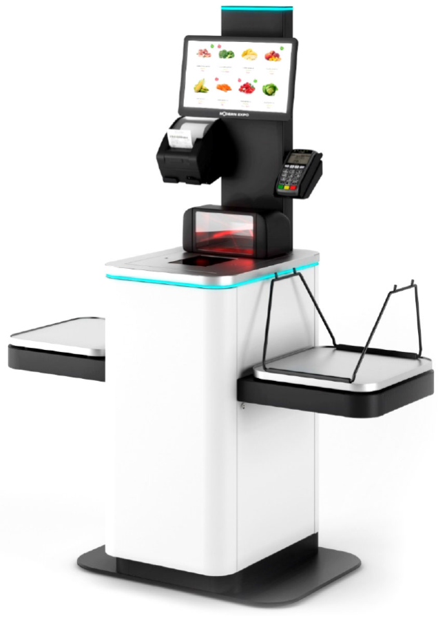 | Комплектующие | касса самообслуживания, дисплей 15,6", сканер Datalogic Magellan 9300I без веса, полка боковая весовая, полка боковая, держатели принтера и терминала оплаты |