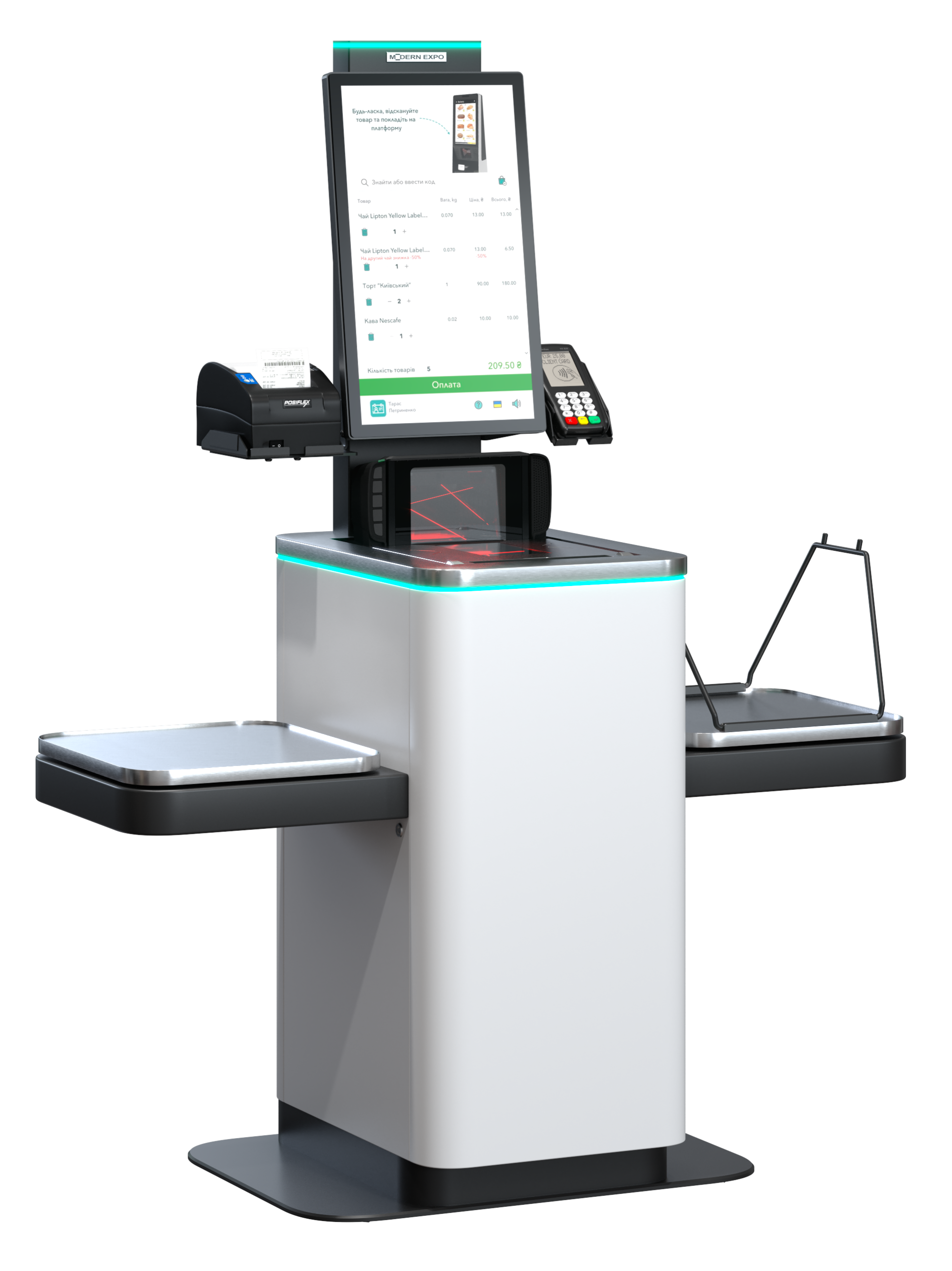 | Дополнительно | держатель ручного сканера, принтер, терминал оплаты, ручной сканер, софт |