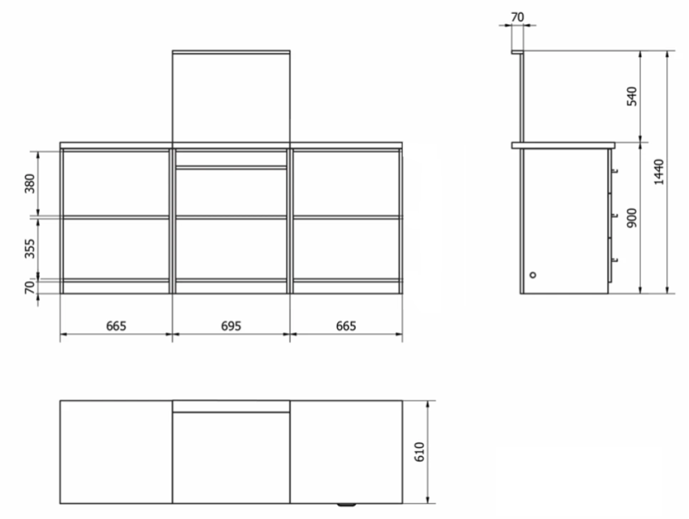 Кассовая зона из ДСП тип 1 с полками, навесками и без ящиков