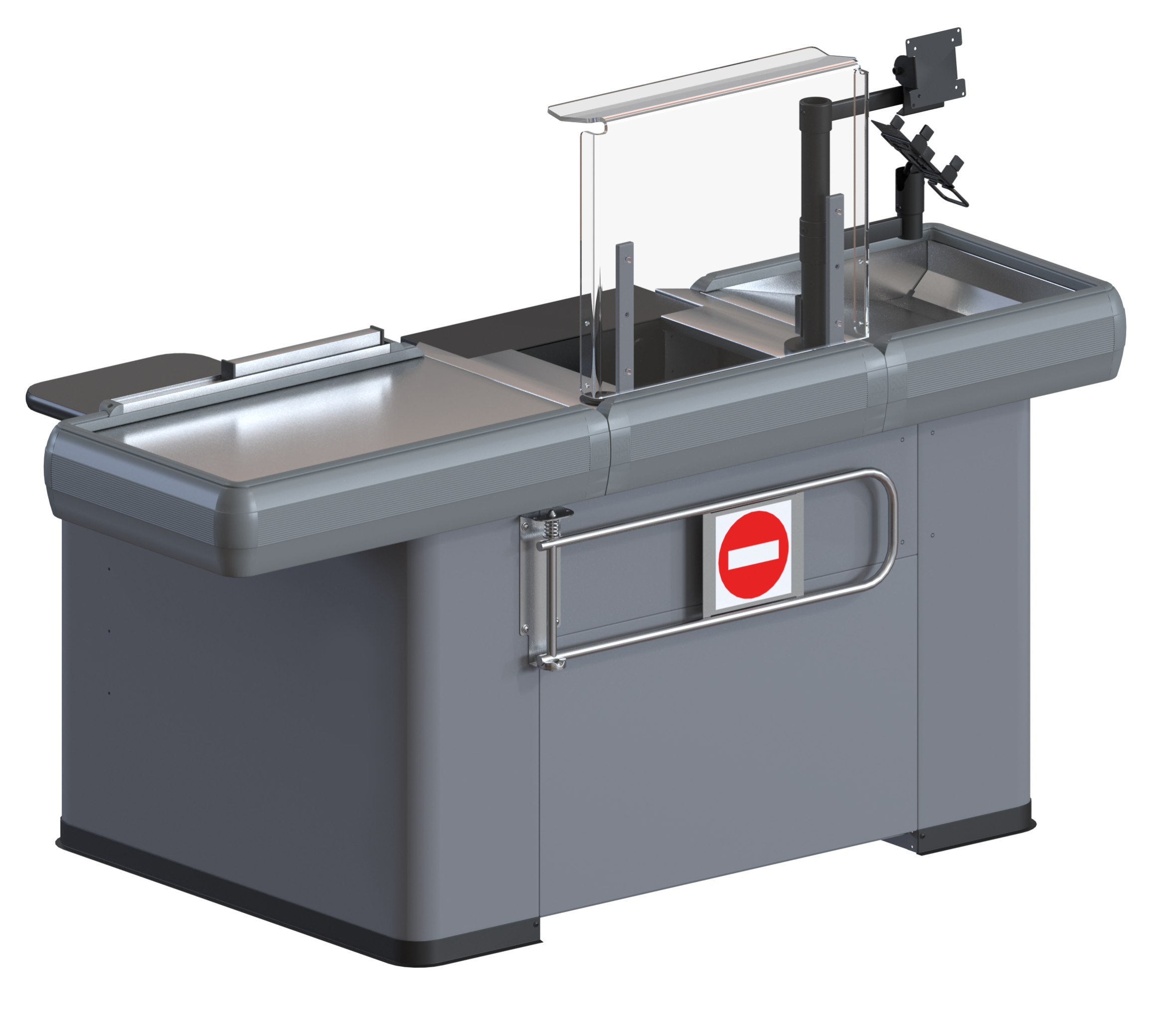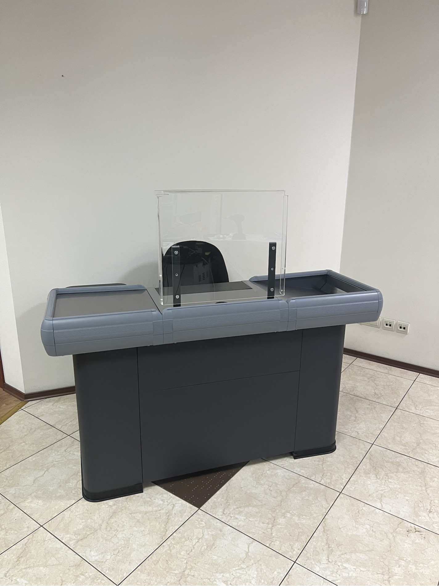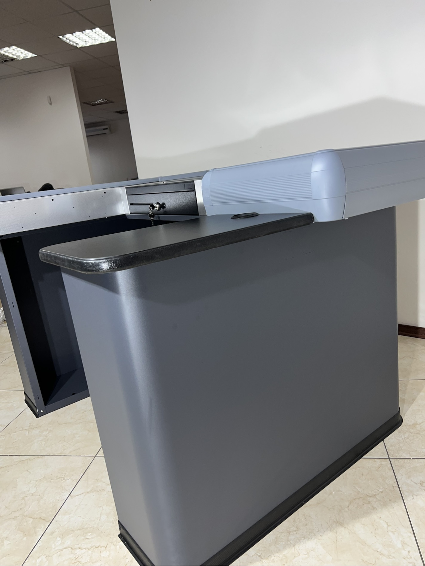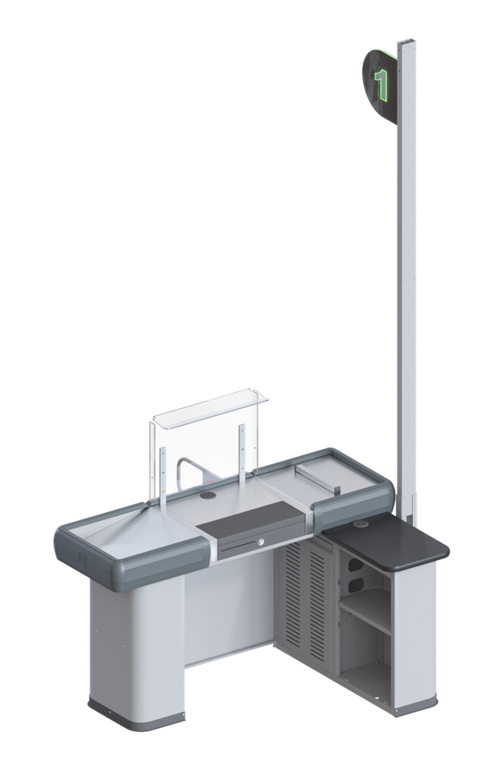 Данные боксы поставляются без конвейерной ленты, в то же время просторен, универсален за счет возможности правостороннего и левостороннего исполнения. Благодаря лаконичному внешнему виду, впишется в дизайн любого торгового помещения, а полимерное порошковое покрытие может быть любого оттенка в соответствии с каталогом RAL и предпочтениям заказчика. Приятным бонусом такого мини кассового бокса есть его низкая стоимость в сравнении с боксами для больших супермаркетов и магазинов.