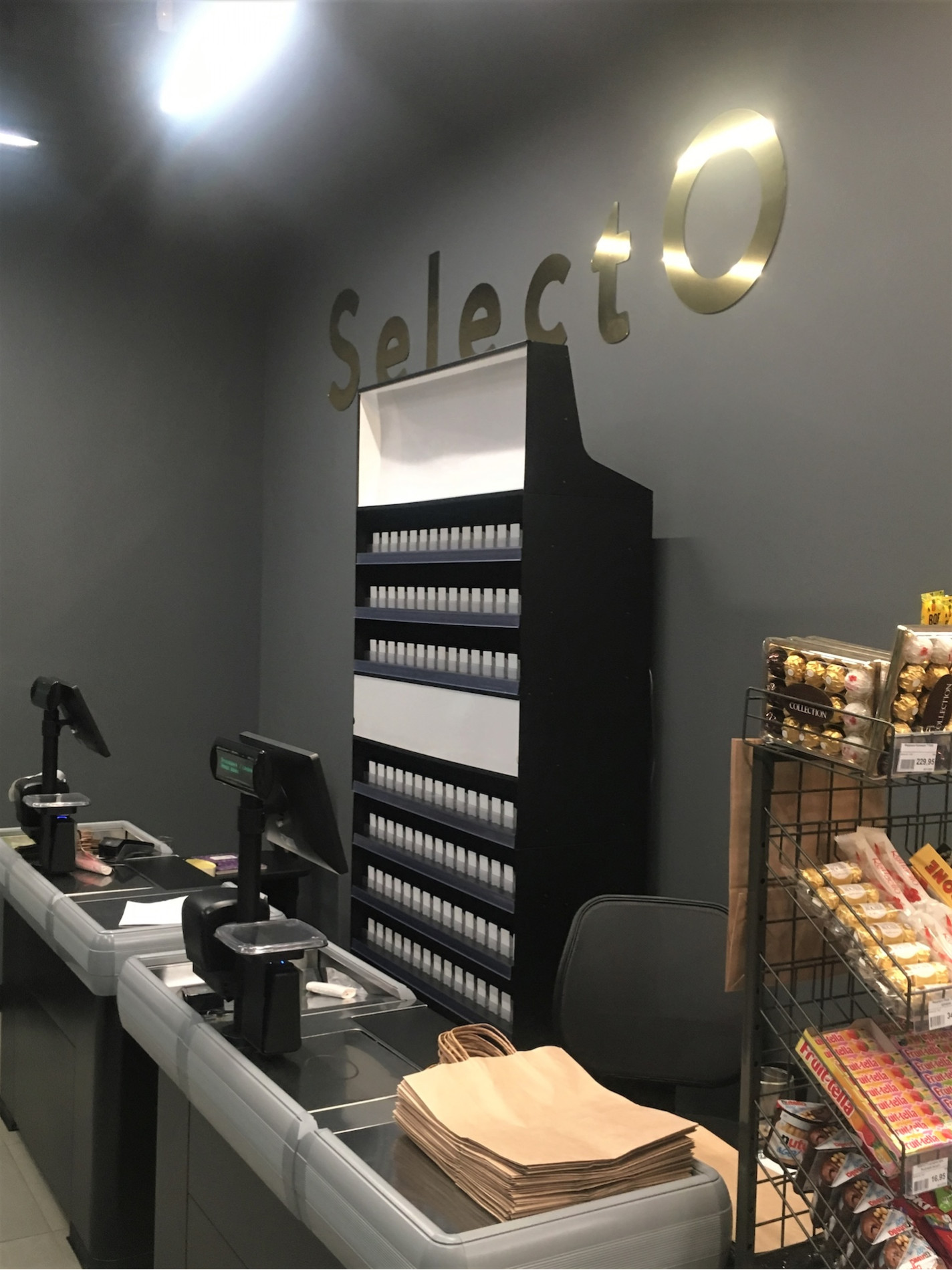 В торговых помещениях, где площадь ограничена и каждый квадратный метр используется по назначению, оптимальным решением станут компактные кассовые боксы для минимаркетов и небольших магазинов. Конструкция имеет все необходимые аксессуары для того, чтоб и кассир во время рабочего процесса, и покупатель чувствовали себя комфортно. При этом бокс не отличается большими габаритами, очень компактен, удобен, занимает минимум торговой площади, а при желании может быть укомплектован дополнительными аксессуарами (система оверхед для сигарет, аксессуары для фронтального представления небольшого товара).