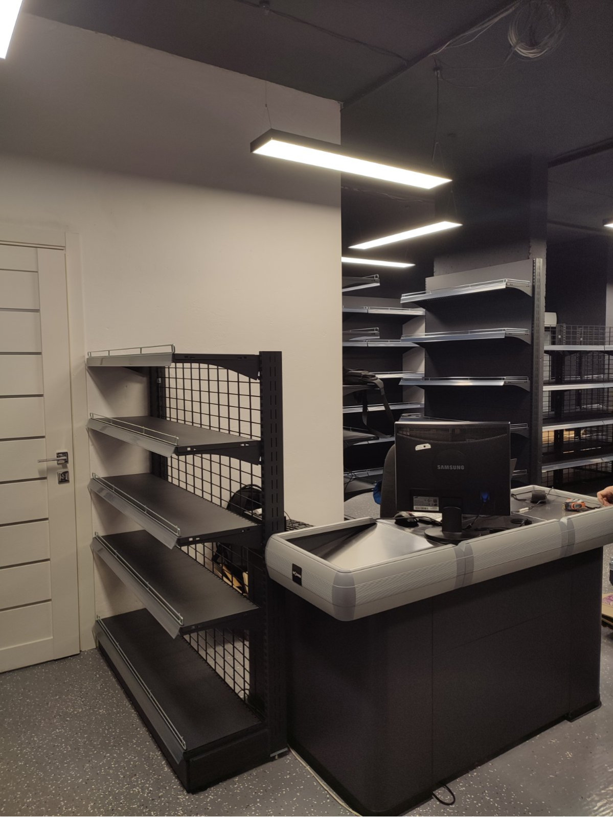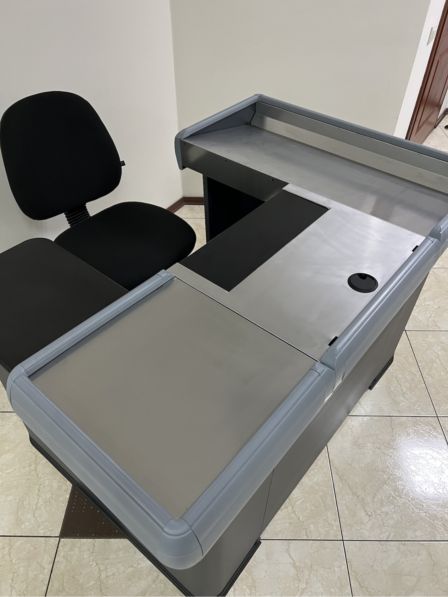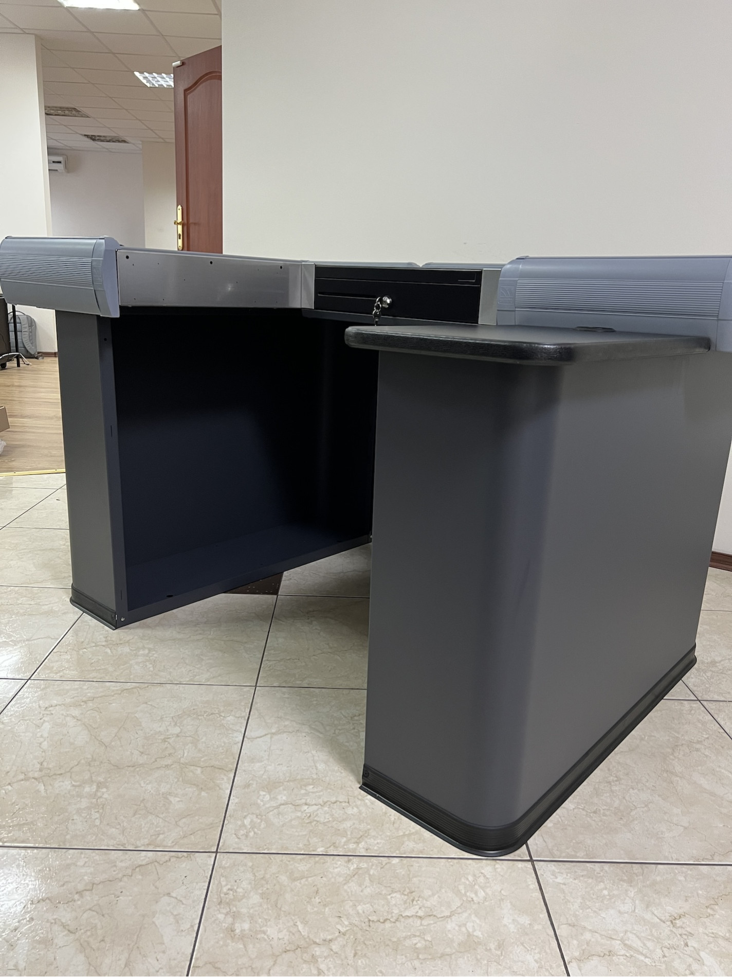 | Комплектующие | рабочее место для денежного ящика, денежный ящик, столешница кассового бокса (ДСП черная) |