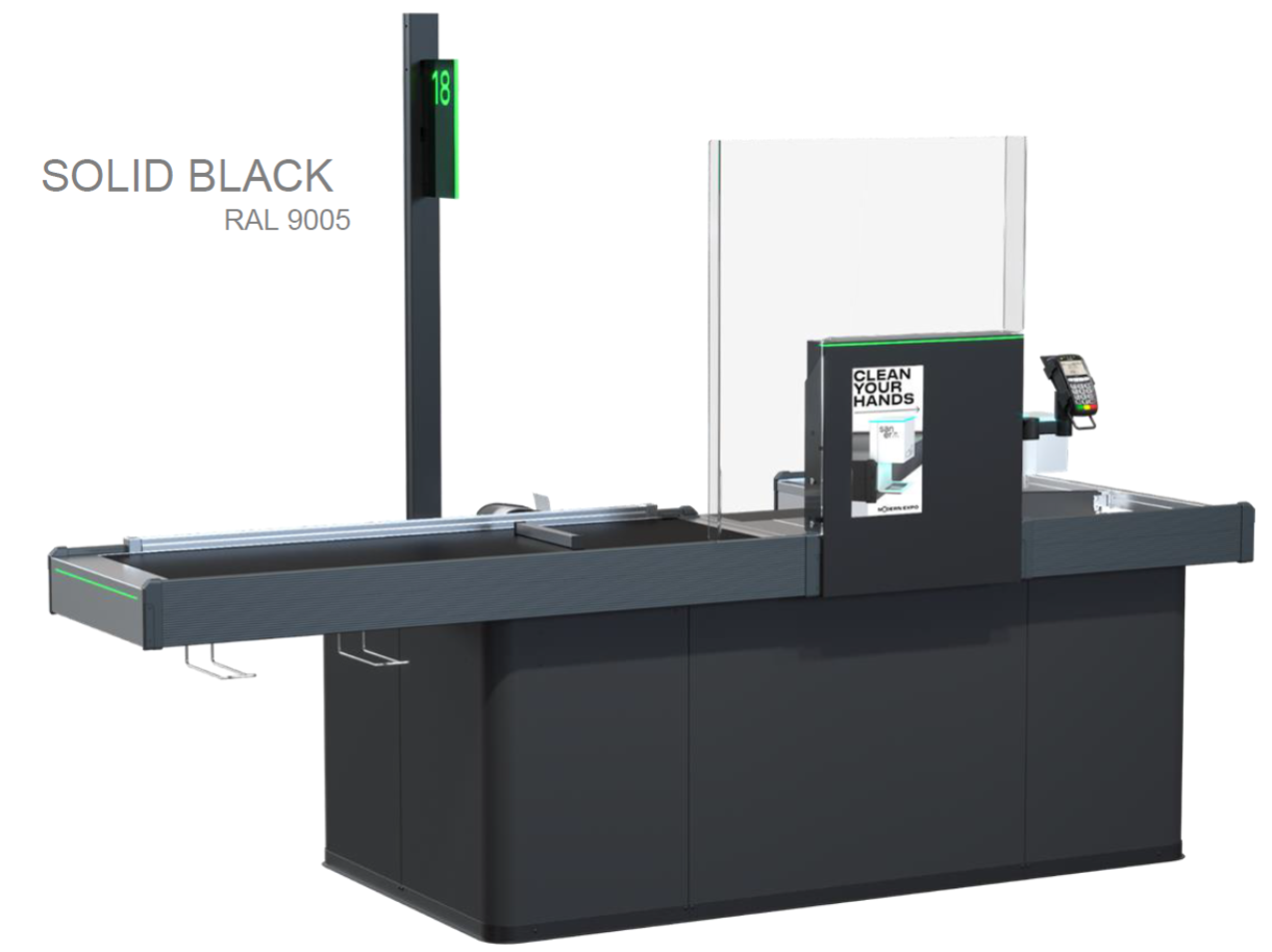 | Комплектующие | основание, накопитель, транспортер, рабочее место для денежного ящика, столешница кассового бокса (ДСП черная) |