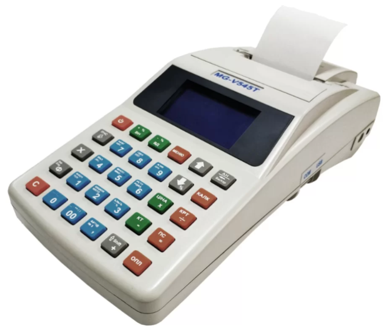 Кассовый аппарат MG-V545T — это специальное электронное устройство для автоматизации процесса продажи товаров. Его главные функции — регистрация и хранения данных о продажах, а также печать чеков и других документов.