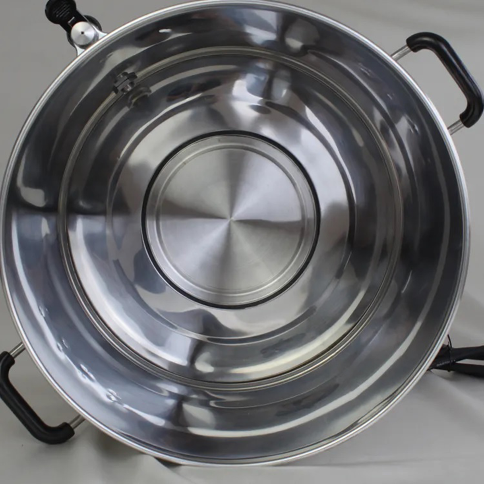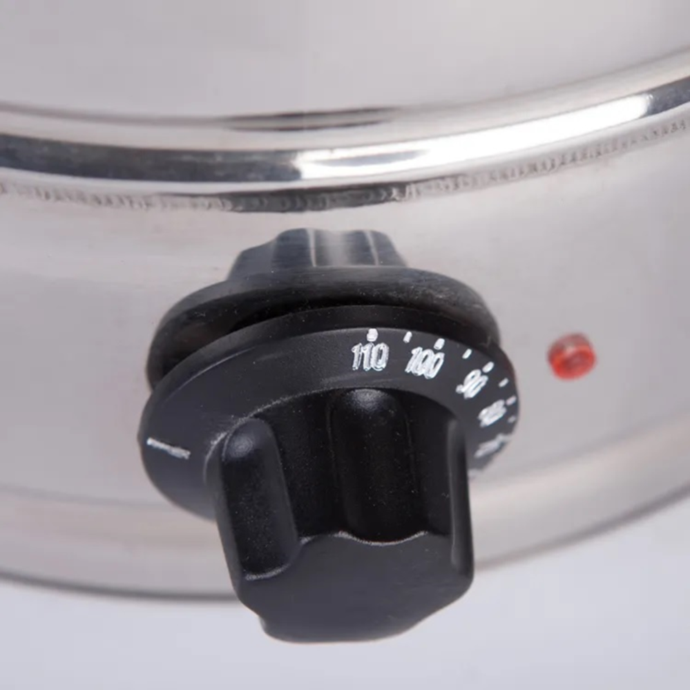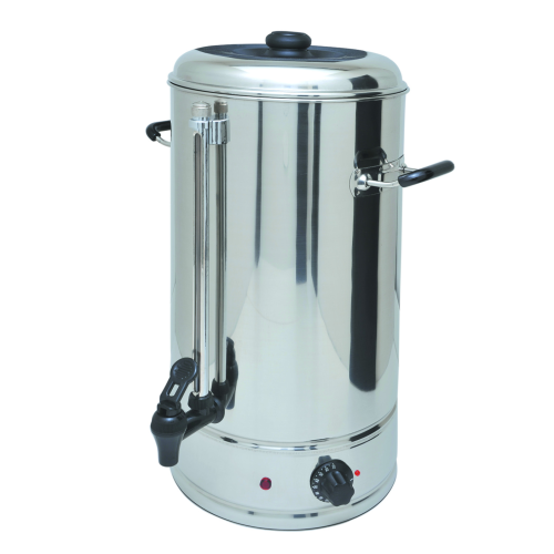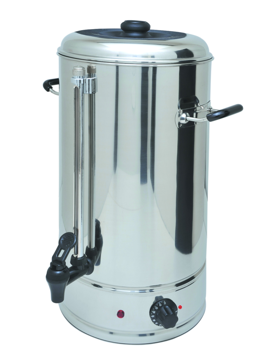 Корпус изготовлен из нержавеющей стали, что обеспечивает надежность, устойчивость к коррозии и гигиеничность в использовании. Одинарная стенка толщиной 0,6 мм гарантирует быстрый нагрев и удобство обслуживания. Крышка с защитой от случайного открывания повышает безопасность во время эксплуатации, а индикатор уровня воды позволяет контролировать наполнение бака.