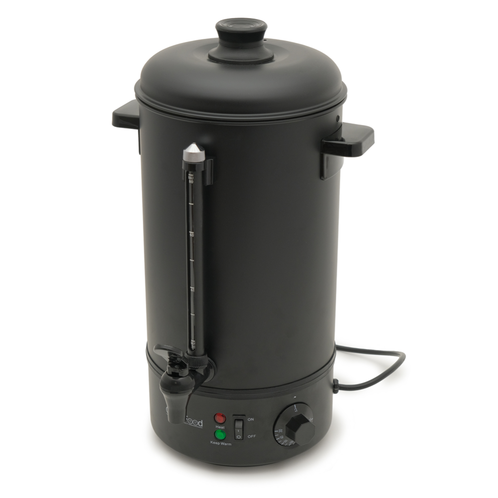 Устройство оснащено одинарной стенкой толщиной 0,5 мм, крышкой с защитой от случайного открывания и устойчивой основой, что обеспечивает надежность в работе. Температура воды регулируется в пределах 30–100 °C благодаря автоматическому термостату, который поддерживает выбранный режим нагрева без необходимости постоянного контроля.