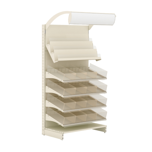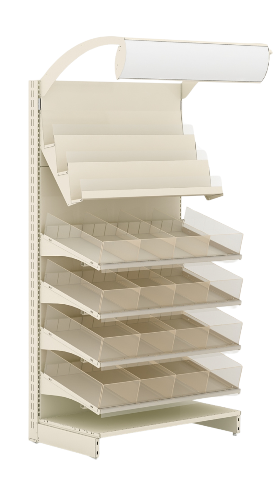 - Ящики для развеса товаров: интегрированные ящики для развеса продукции (например, пакетированные конфеты, печенье) с возможностью легкого доступа для покупателей.