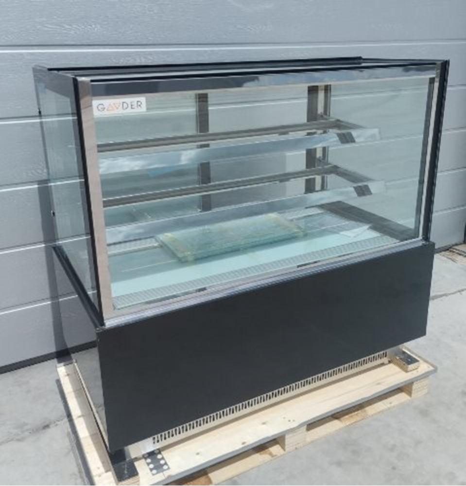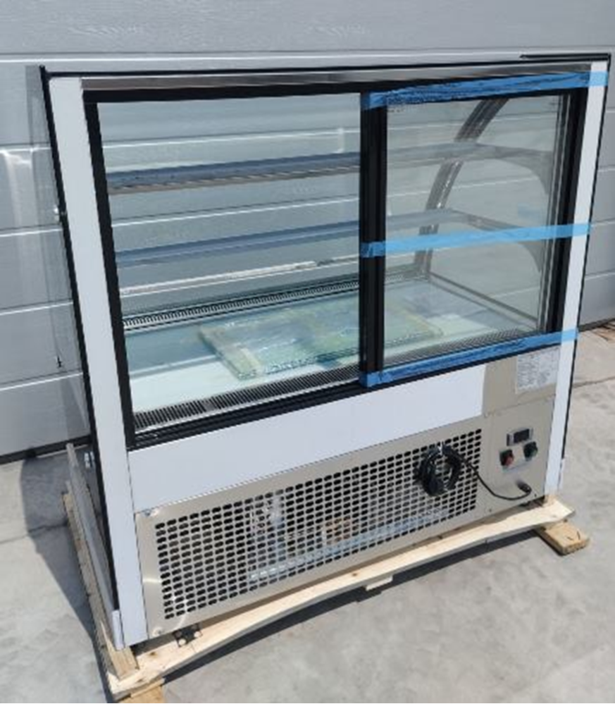 - Охлаждение: в зависимости от типа продуктов, которые вы планируете экспонировать, вы можете выбрать кондитерскую витрину с системой охлаждения кондитерских изделий для поддержания температуры тортов и других десертов, хлодоген: R290.