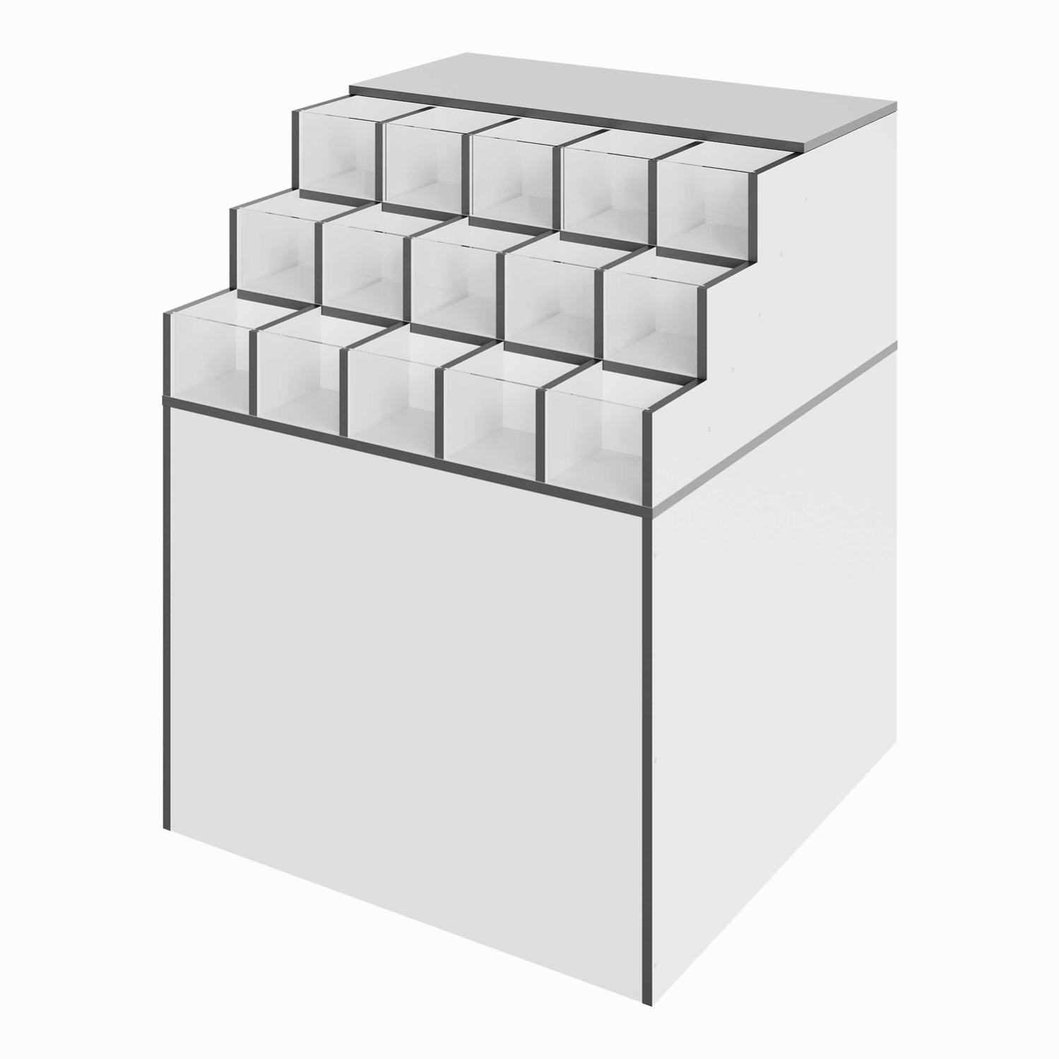 - 15 открытых ячеек с регулируемыми разделителями для товара обеспечивают максимальную организованность и доступность каждого вида продукции.