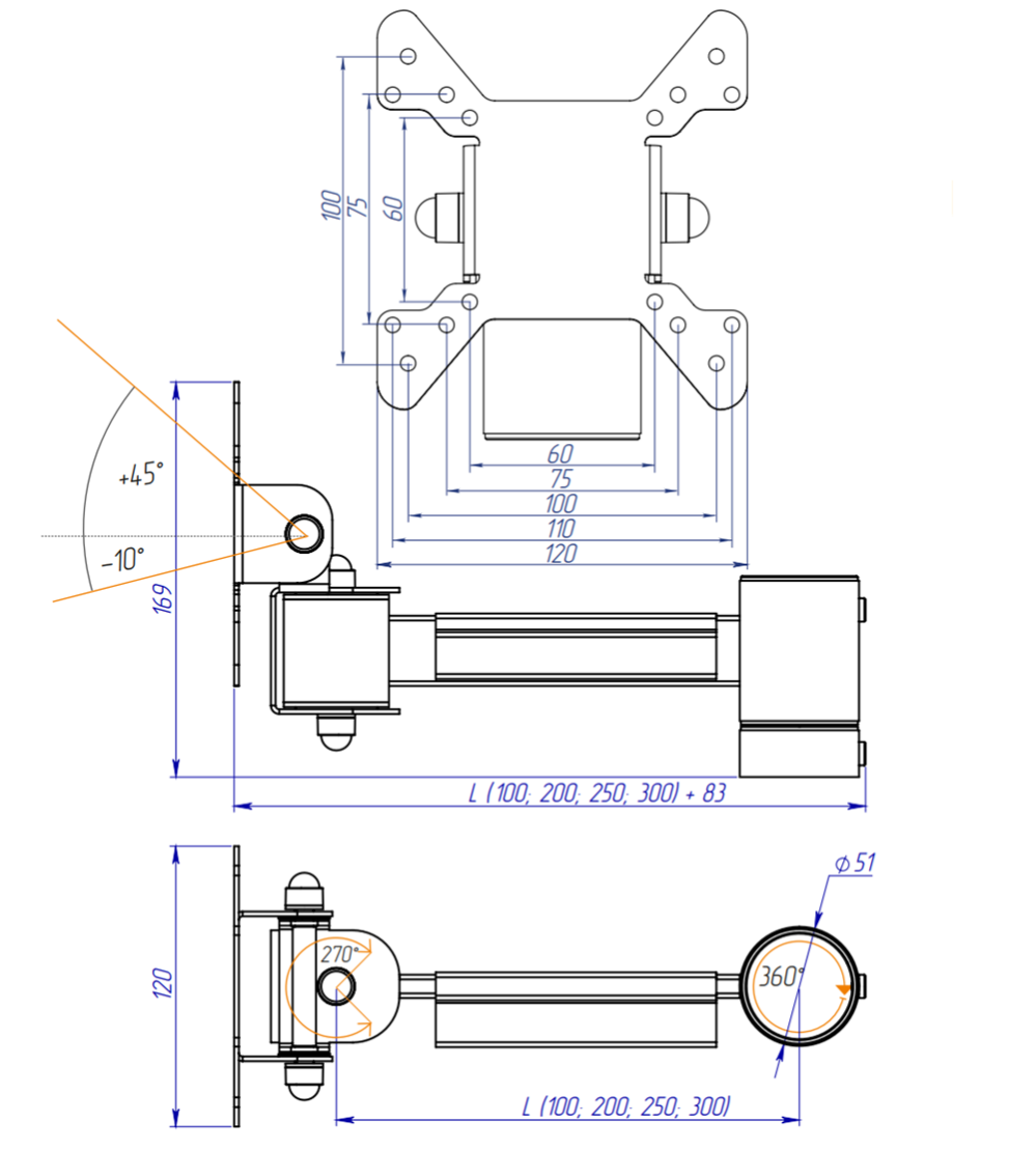 - Угол поворота кронштейна вокруг оси базовой стойки 360 градусов.