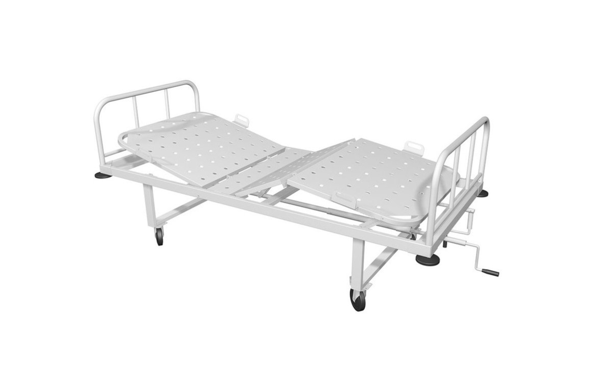 - Трехсекционное ложе из перфорированного металлического листа с винтовой регулировкой спинной и тазобедренной секций.