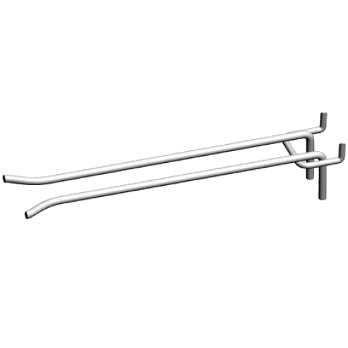 - Двойной металлический прут — идеально для тяжелого ручного инструмента. В случае постоянного снятия товара покупателями крючок сохраняет жесткость и не деформируется.