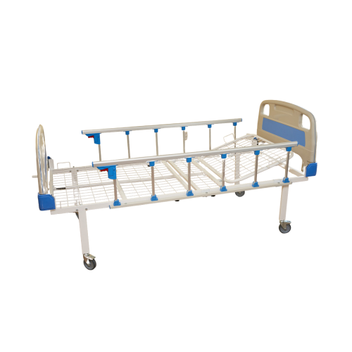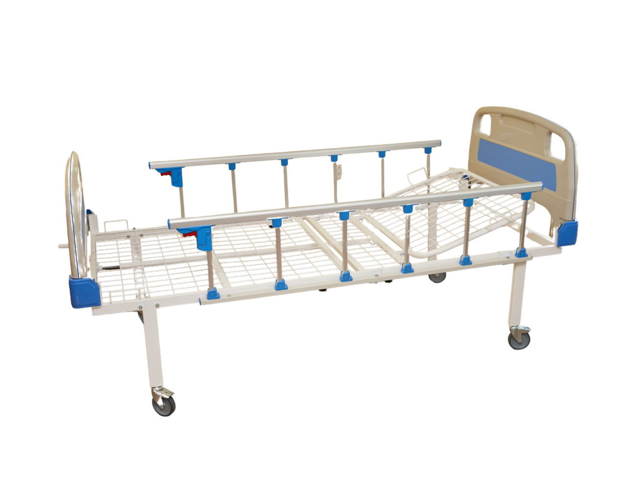Кровать медицинская функциональная КФ-2-МП-БП-ОП-К75 с пластиковыми быльцами, телескопическими пластиковыми ограждениями и колесами с фиксатором диаметром 75 мм предназначена для лежачих больных, которые временно ограничены в движении и нужда особом уходе. Регулировка угла наклона производится с помощью вращения рычага регулировки. Происходит это плавно и без усилий, справится даже хрупкая девушка. При необходимости рычаг регулировки можно спрятать.