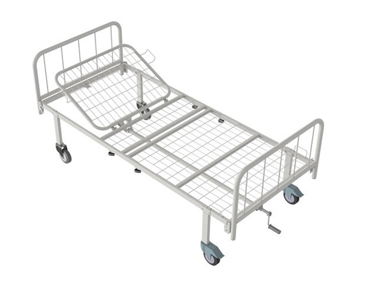 Кровать медицинская функциональная КФ-2-МП-БМ-К125 с металлическими перилами и колесами 125 мм