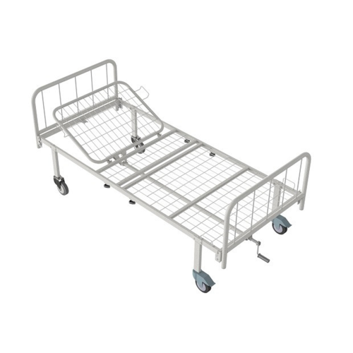 Кровать медицинская функциональная КФ-2-МП-БМ-К125 двухсекционнная с металлическими быльцами и колесами диаметром ф125 мм предназначена для лежачих больных, которые временно ограничены в движении и нуждаются в особом уходе.