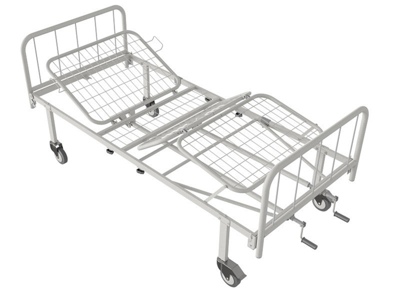 Кровать медицинская функциональная КФ-4-МП-БМ-К125 с металлическими перилами и колесами 125 мм