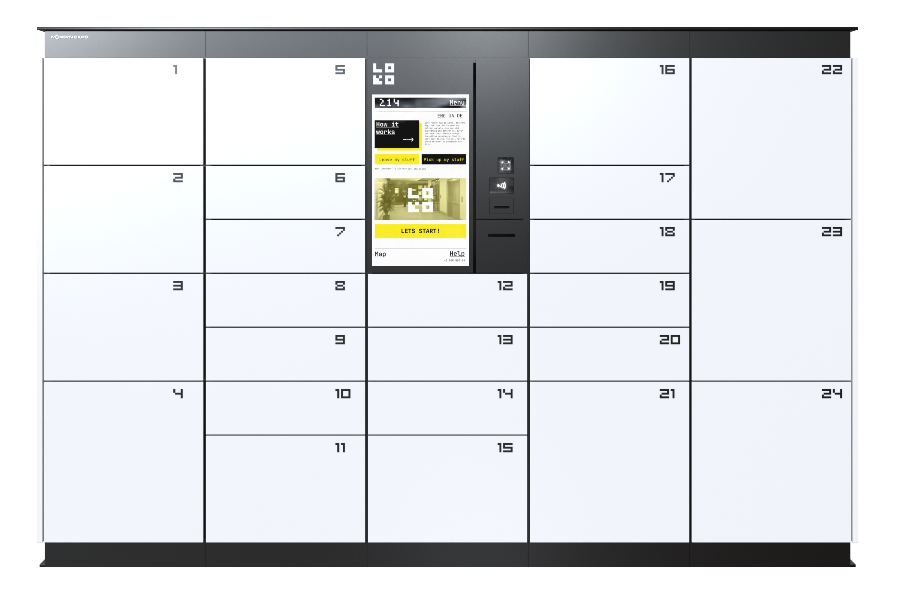 | Комплектующие | колонна Loko Logis PRO 21 дюйм: терминал и 3 ячейки (цена указана без подиума, крыши и боковин) |