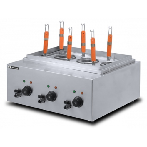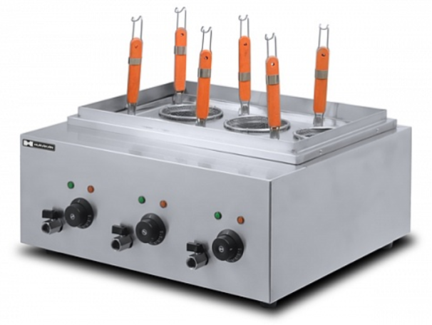 Hurakan HKN-EKT60 – профессиональная макароноварка. Аппарат предназначен для приготовления различных макаронных изделий, варки яиц, креветок, сосисок, изделий из теста (вареников, пельменей). Модель рассчитана на применение при высоких нагрузках, в столовых, пунктах быстрого питания.