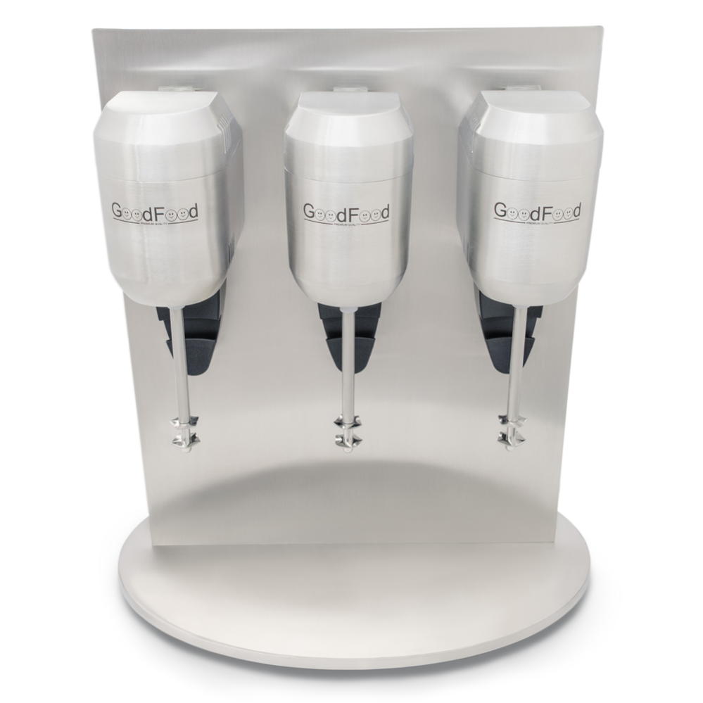 Молочный миксер GoodFood MFD33 — это профессиональная трехпозиционная модель, предназначенная для одновременного приготовления большого количества коктейлей, молочных напитков, шейков и других десертных смесей. Идеально подходит для заведений с высокой нагрузкой: фреш-баров, кафе, кофеен и заведений быстрого обслуживания.