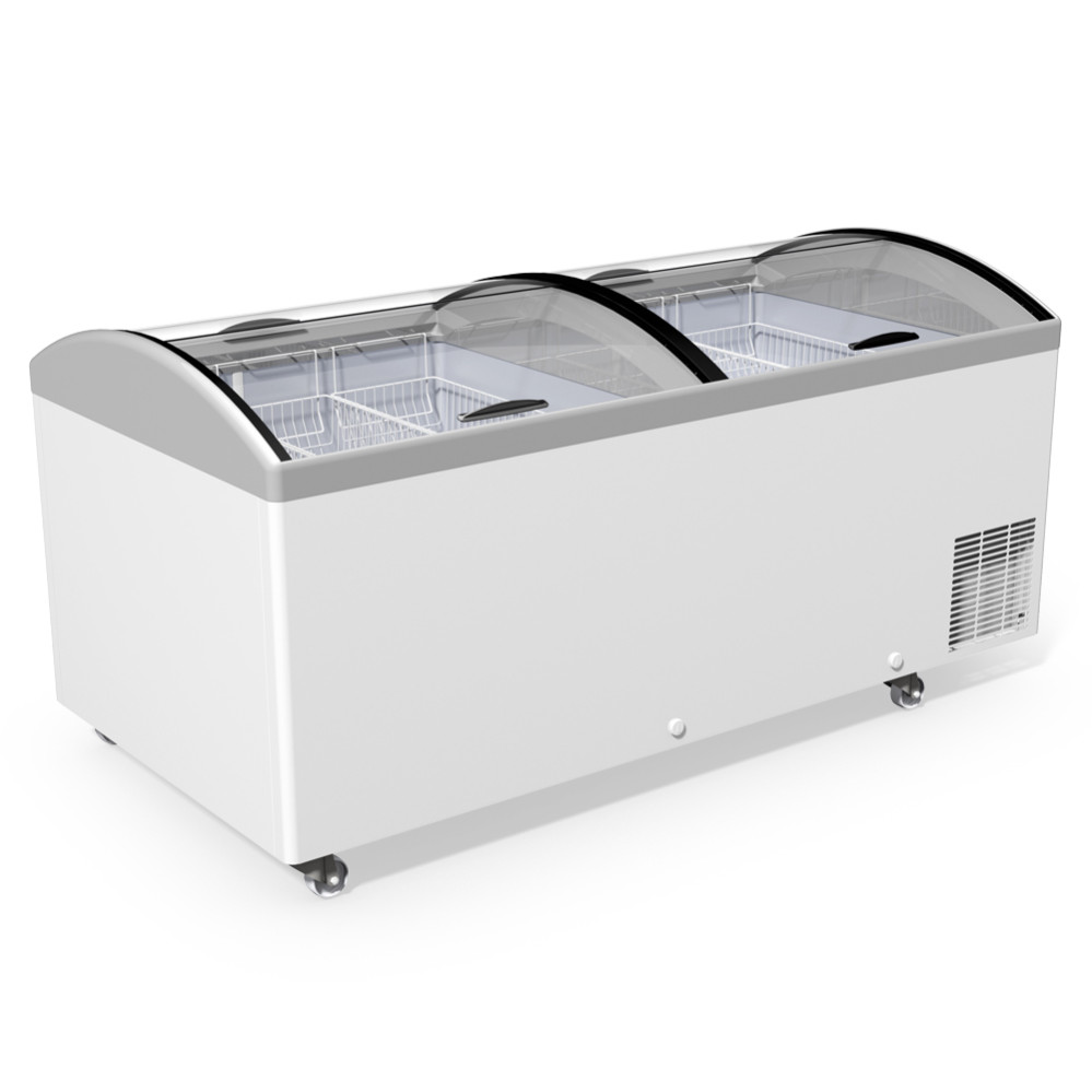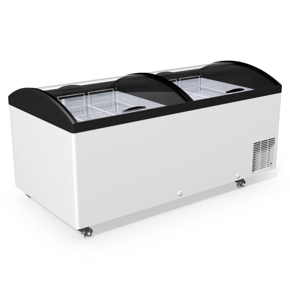 Морозильный боннет M1000V – это удачное решение для коммерческих целей. В таком ларе можно хранить и демонстрировать покупателям замороженные продукты. Это оборудование имеет современный, продуманный дизайн, что делает его практичным и удобным для пользования. Благодаря широким демонстрационным стеклам, покупатели смогут хорошо рассмотреть товар и изъять его при необходимости, открыв ларь.