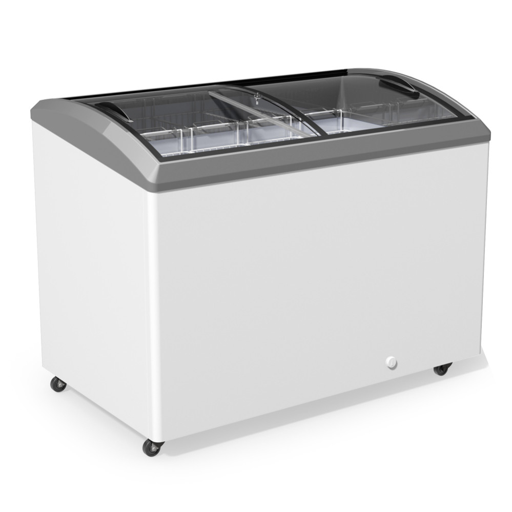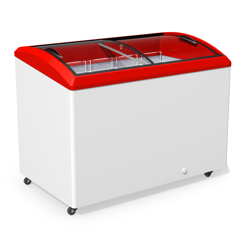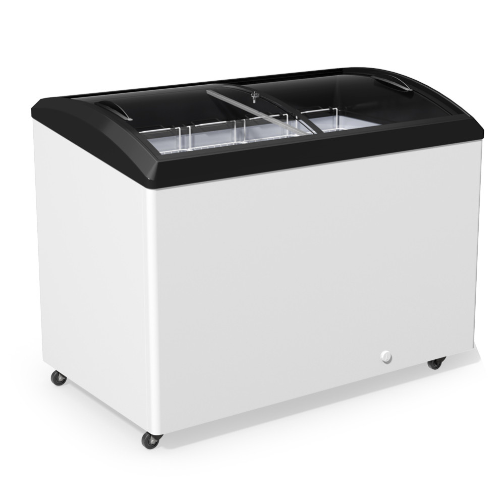 Морозильный ларь серии SH с гнутым стеклом оборудован ударостойким и прочным ABS-пластиком.