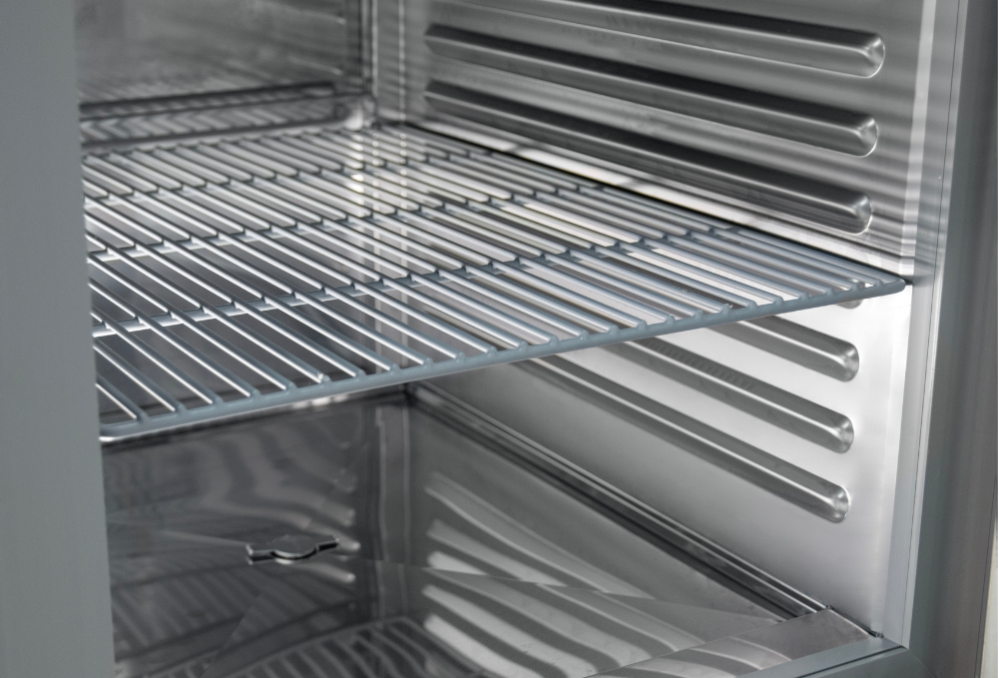 В шкафу установлен компрессор с инверторной технологией. В отличие от традиционных компрессоров, выключаемых после достижения требуемой температуры, инверторные продолжают работать на низких оборотах. Это уменьшает износ деталей и продлевает срок службы компрессора. Основными преимуществами инверторной технологии является более длительный срок эксплуатации и тихая работа, что особенно полезно на профессиональных кухнях.