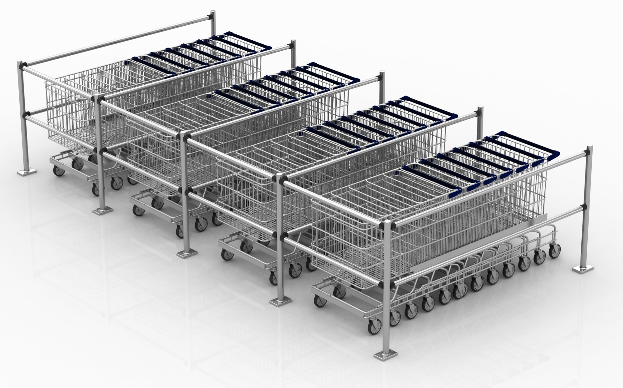 В комплекте должны идти вертикальные столбики с муфтами, а также перемычки к ним различной длины, в зависимости от размера ограждаемого ряда. Все элементы выполнены из нержавеющей стали AISI 430. Стандартная высота стоек 1060 мм, диаметр стойки 48 мм, диаметр перемычки 40 мм.
